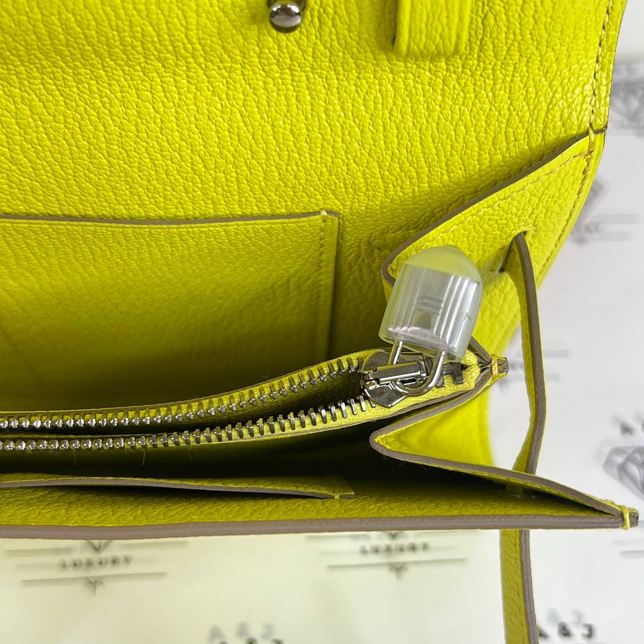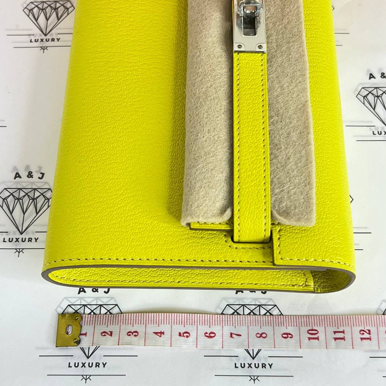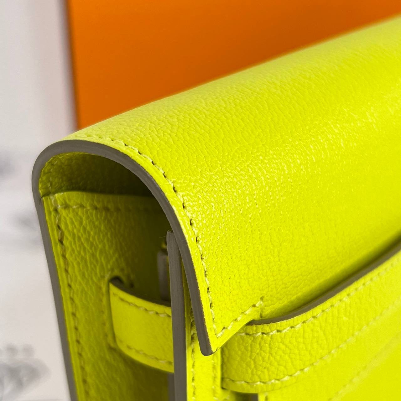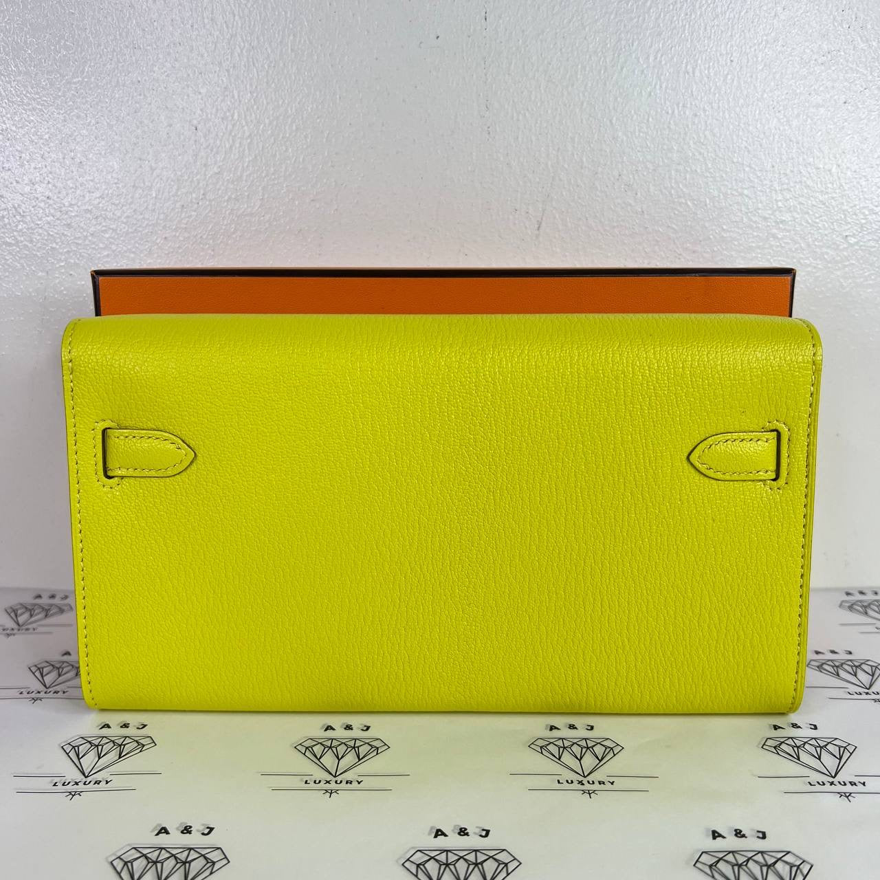 Hermes Kelly To Go in Lime Chevre Leather PHW (Stamp Y - 2020)