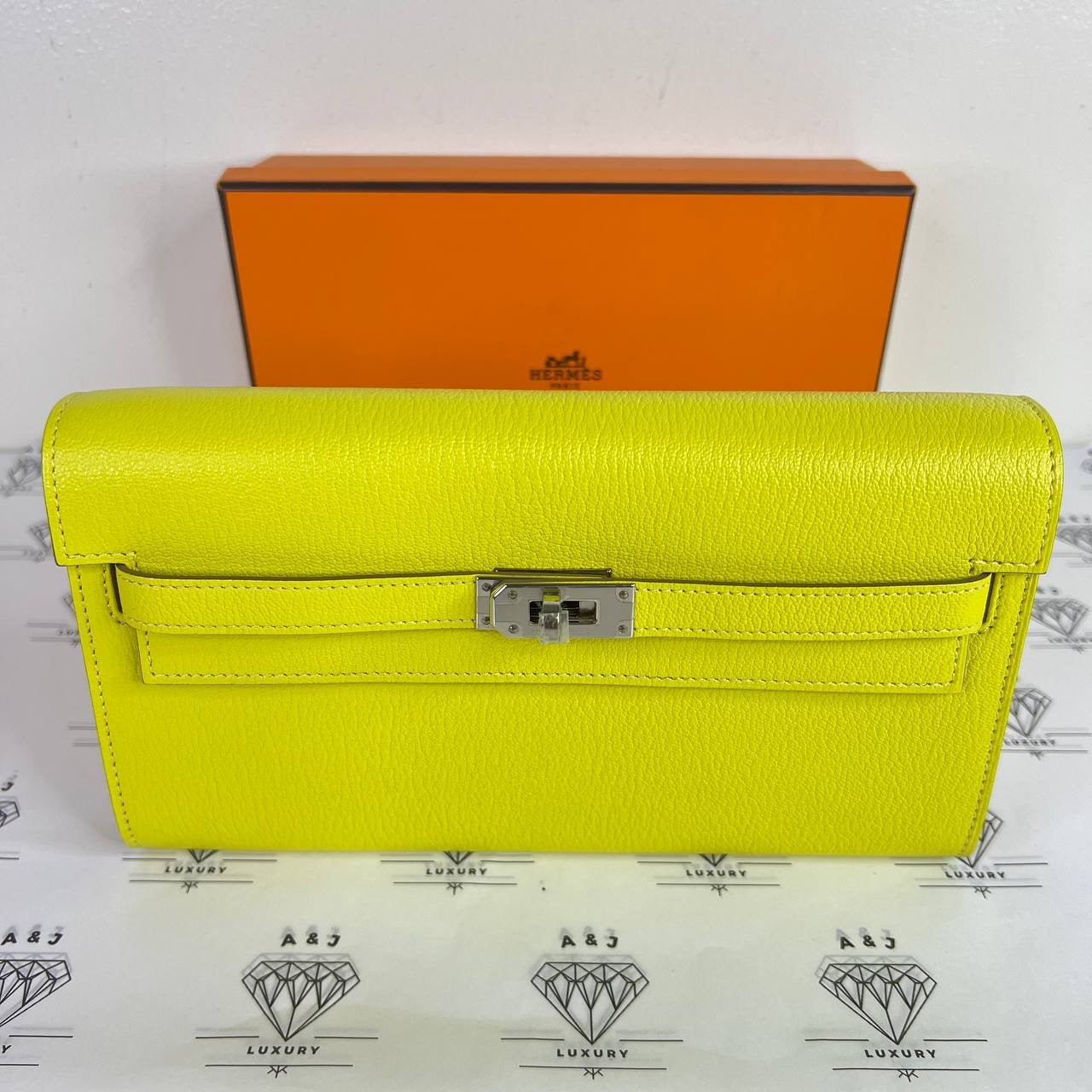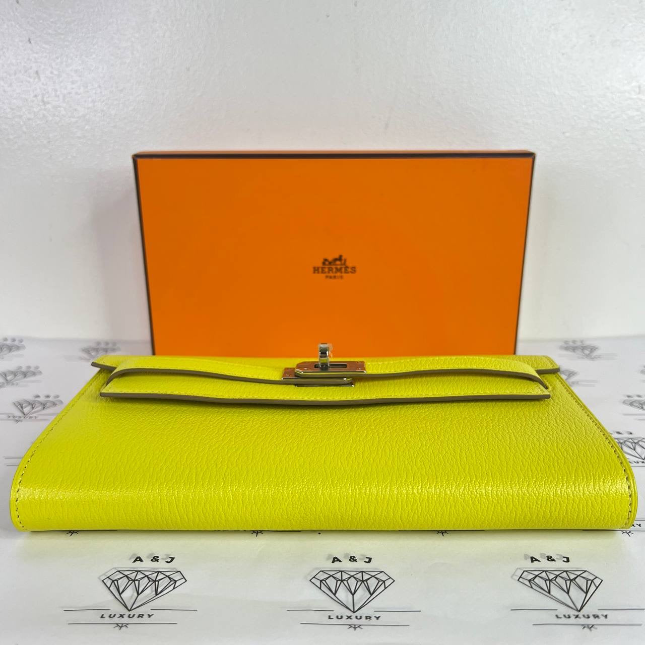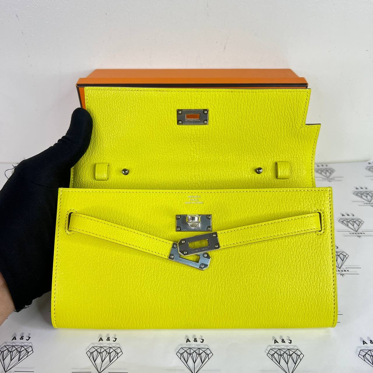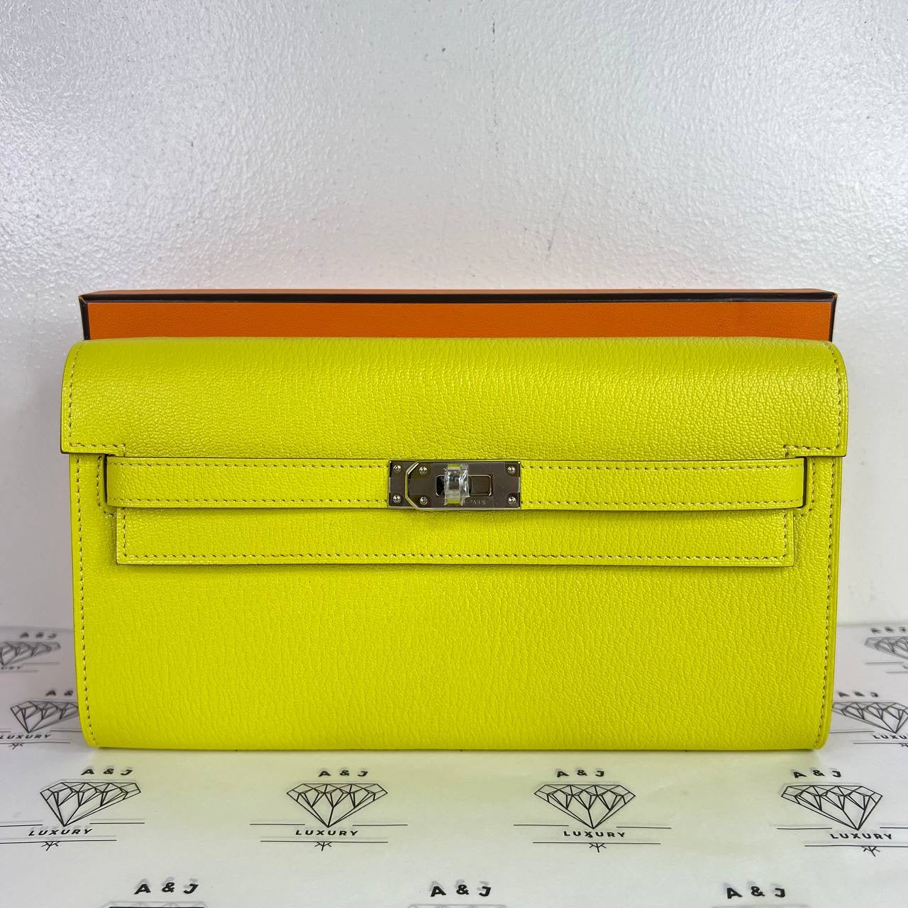 Hermes Kelly To Go in Lime Chevre Leather PHW (Stamp Y - 2020)