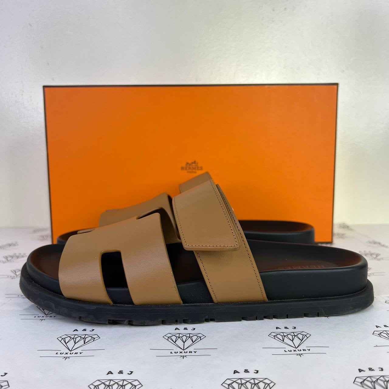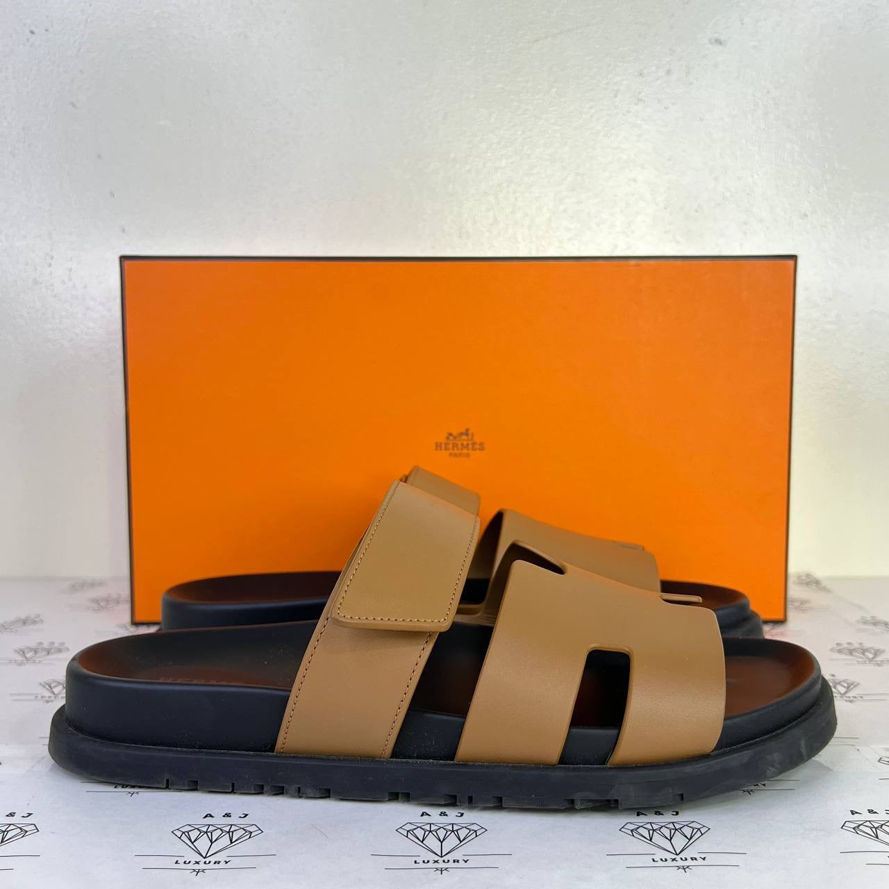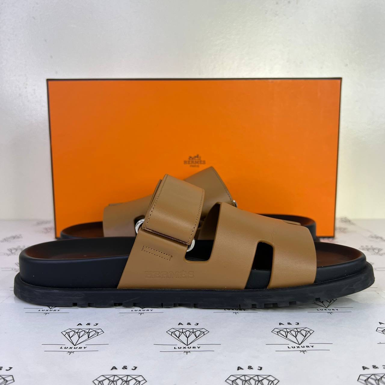 Hermes Mens Chypre Sandals in Tan Size 39EU