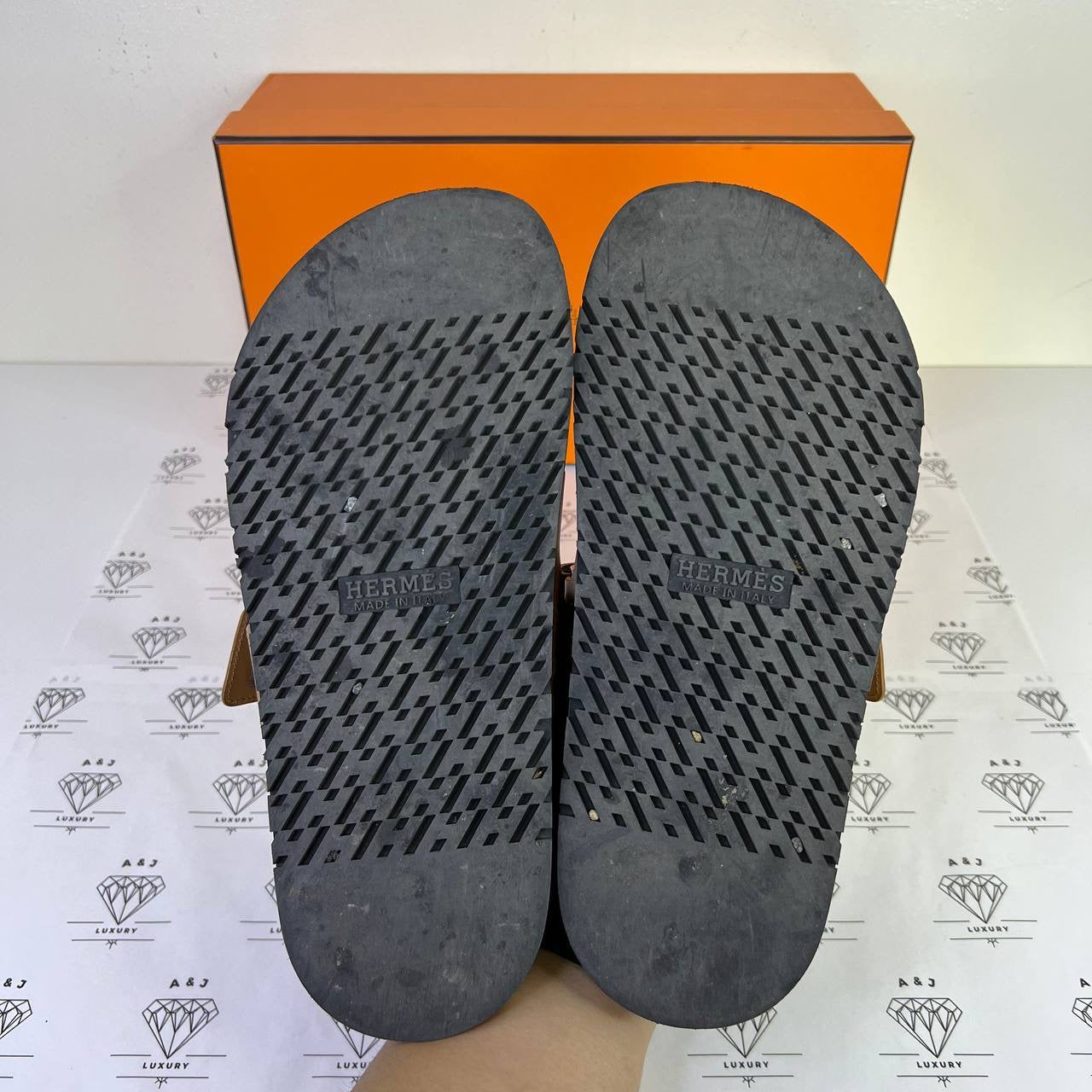 [PRE LOVED] Hermes Mens Chypre Sandals in Tan Size 39EU