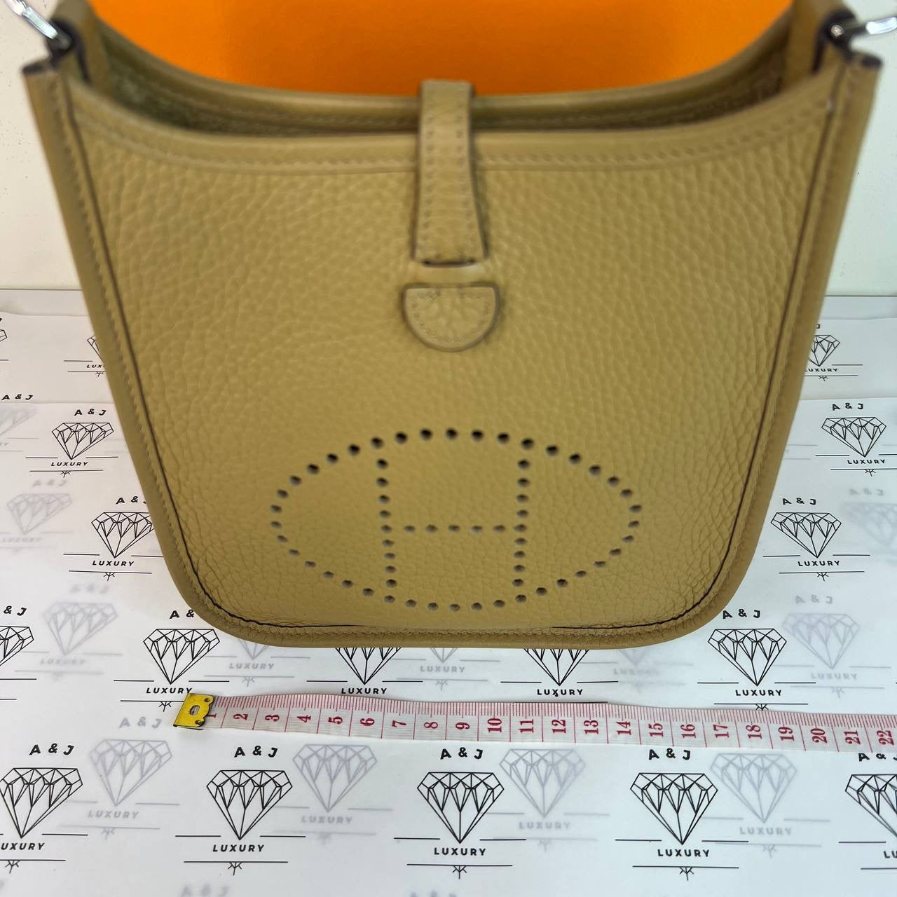 Hermes Mini Evelyne 16 (TPM) in Biscuit Clemence Leather PHW (Stamp Z - 2021)
