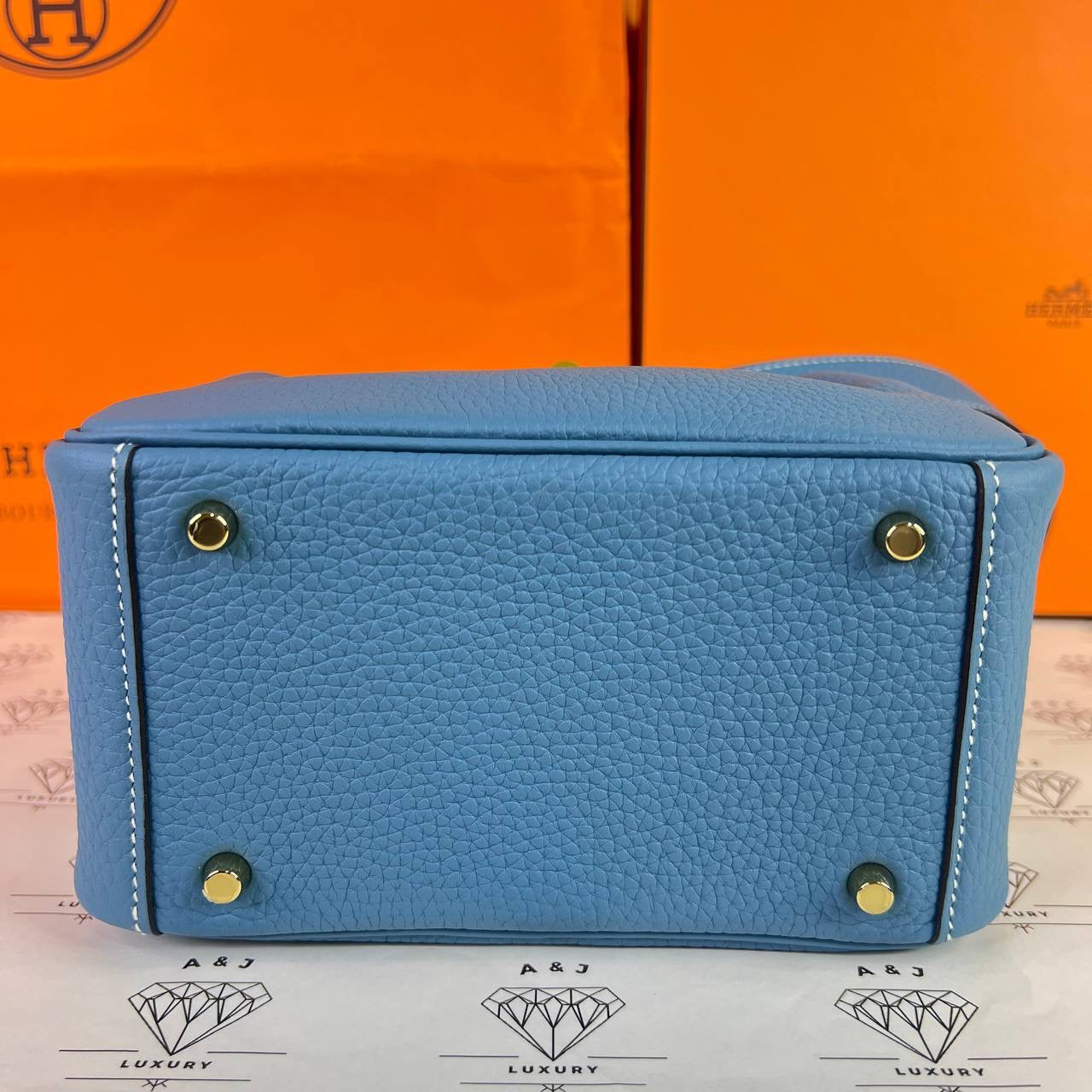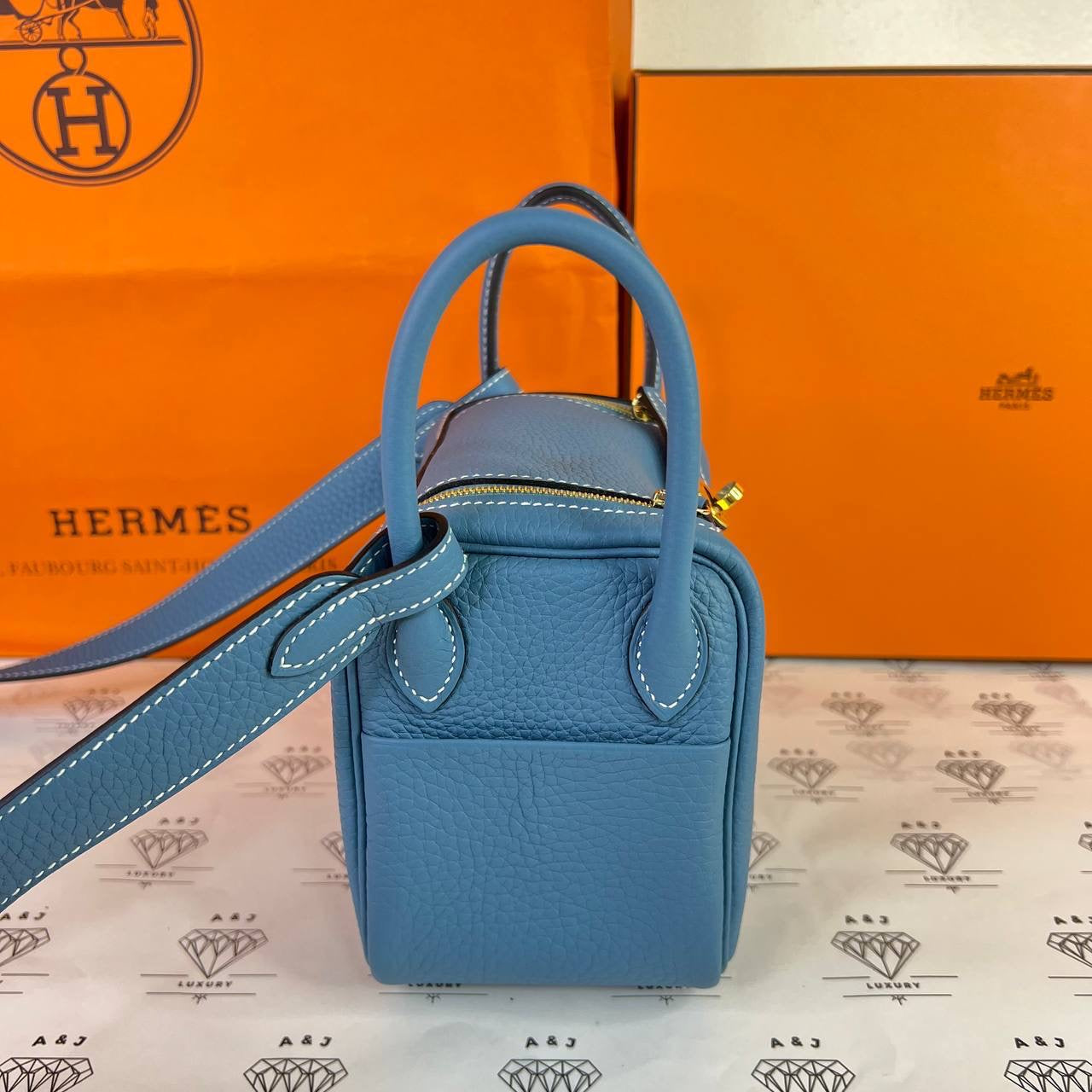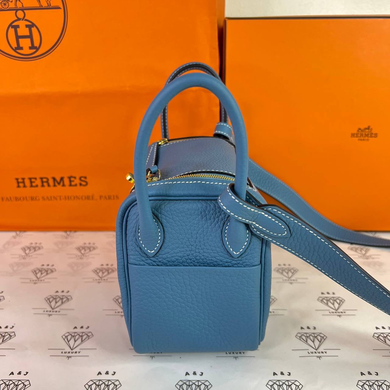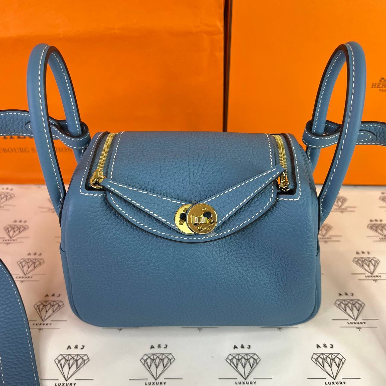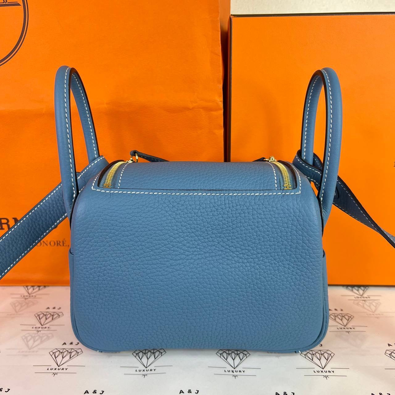 [PRE LOVED] Hermes Mini Lindy in Blue Jean Clemence Leather GHW (Stamp B - 2023)
