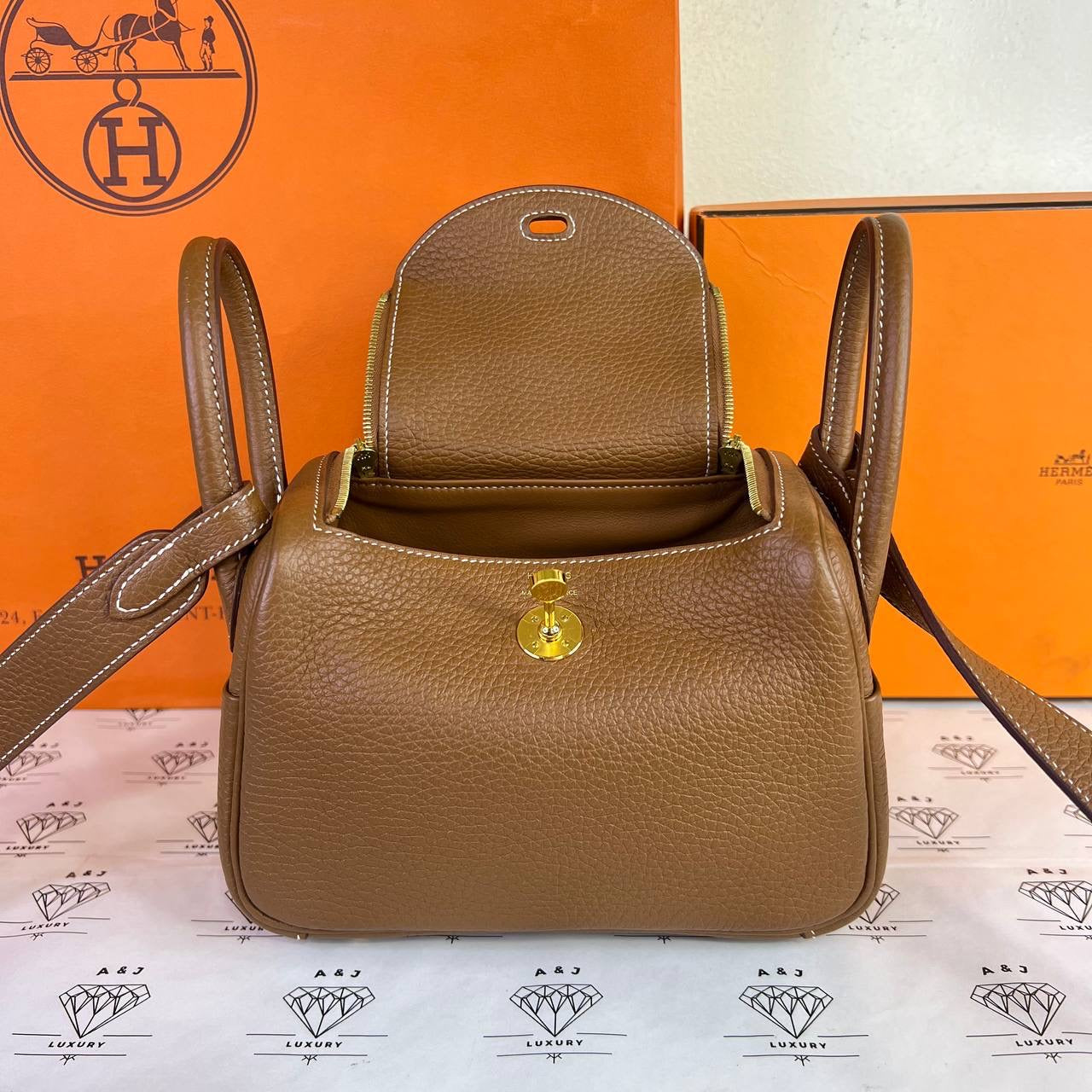 [PRE LOVED] Hermes Mini Lindy in Gold Clemence Leather GHW (Stamp U - 2022)