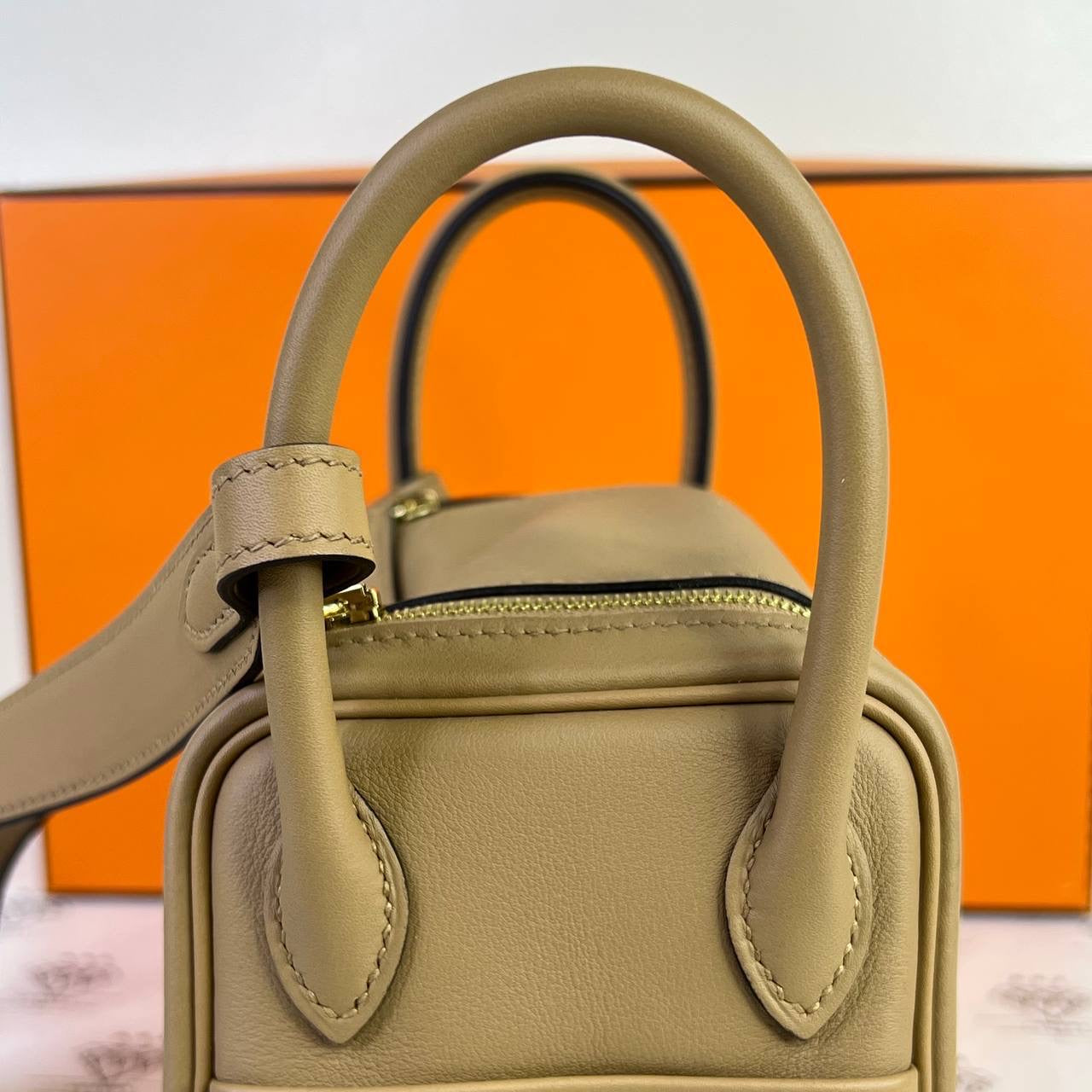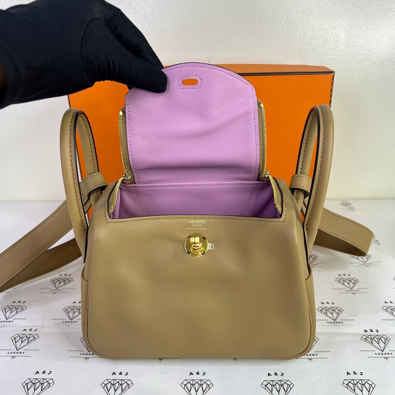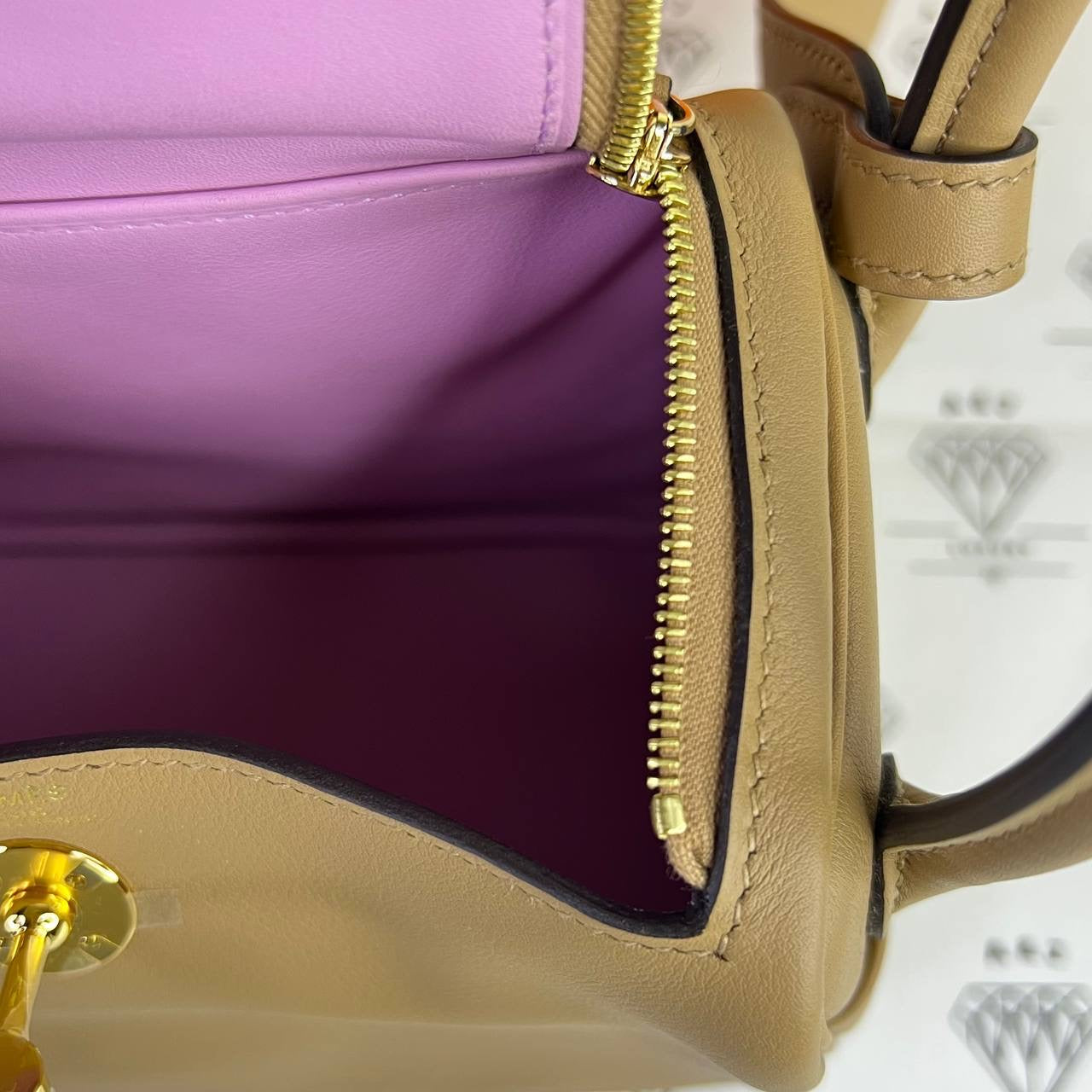 [PRE LOVED] Hermes Mini Lindy Verso in Chai/Mauve Pale Swift Leather GHW (Stamp W - 2024)