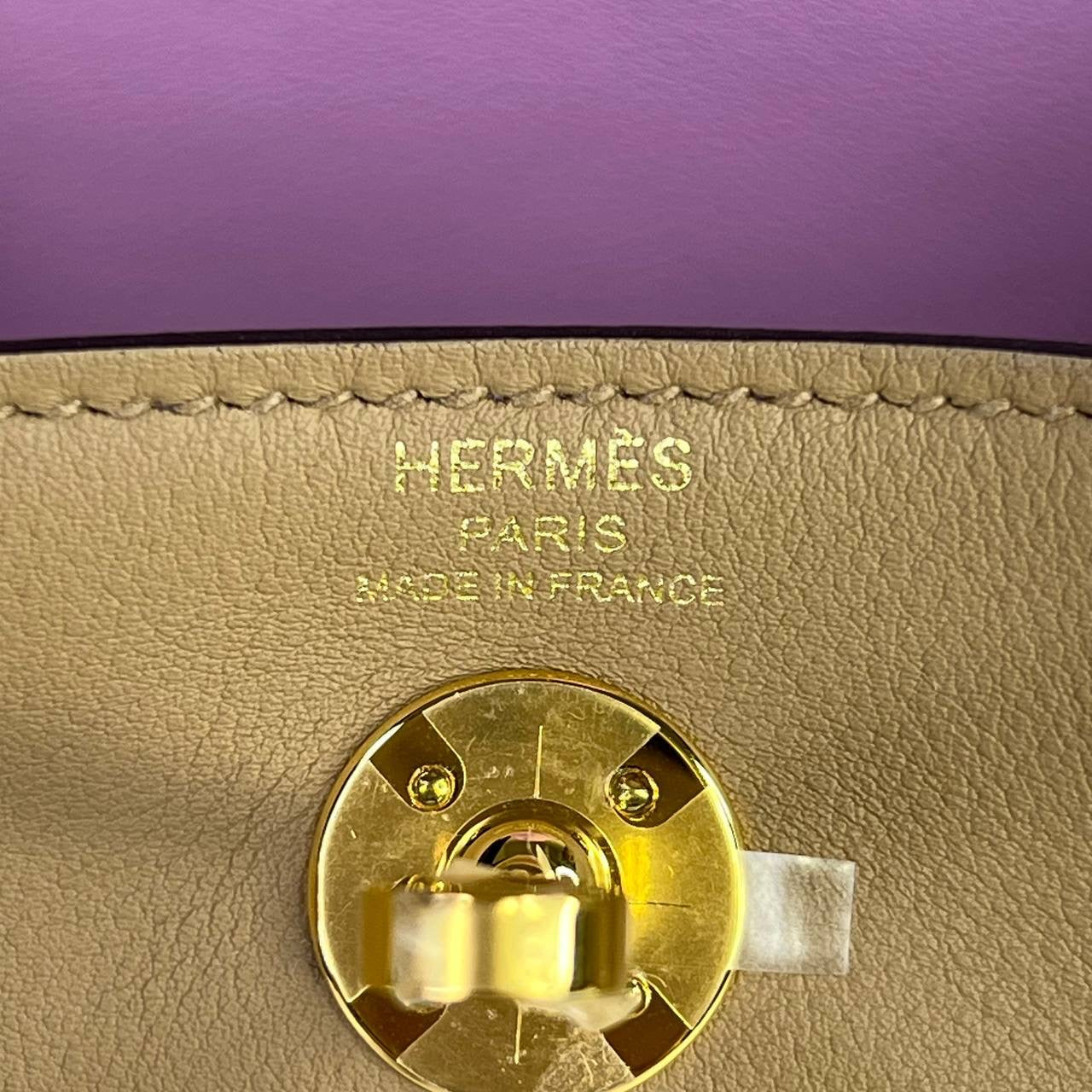 Hermes Mini Lindy Verso in Chai/Mauve Pale Swift Leather GHW (Stamp W - 2024)