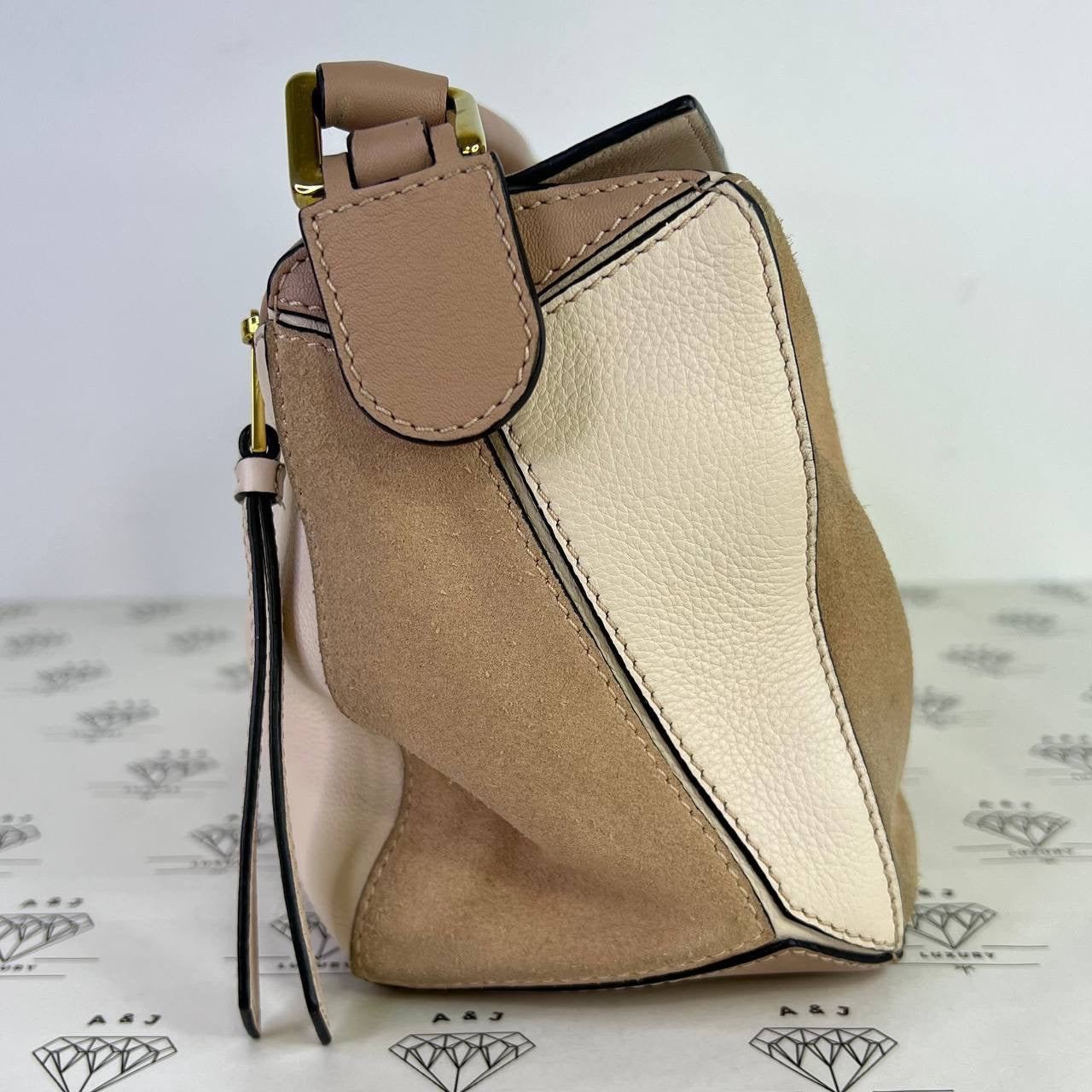Loewe Small Puzzle in Dusty Pink Calfskin and Suede GHW