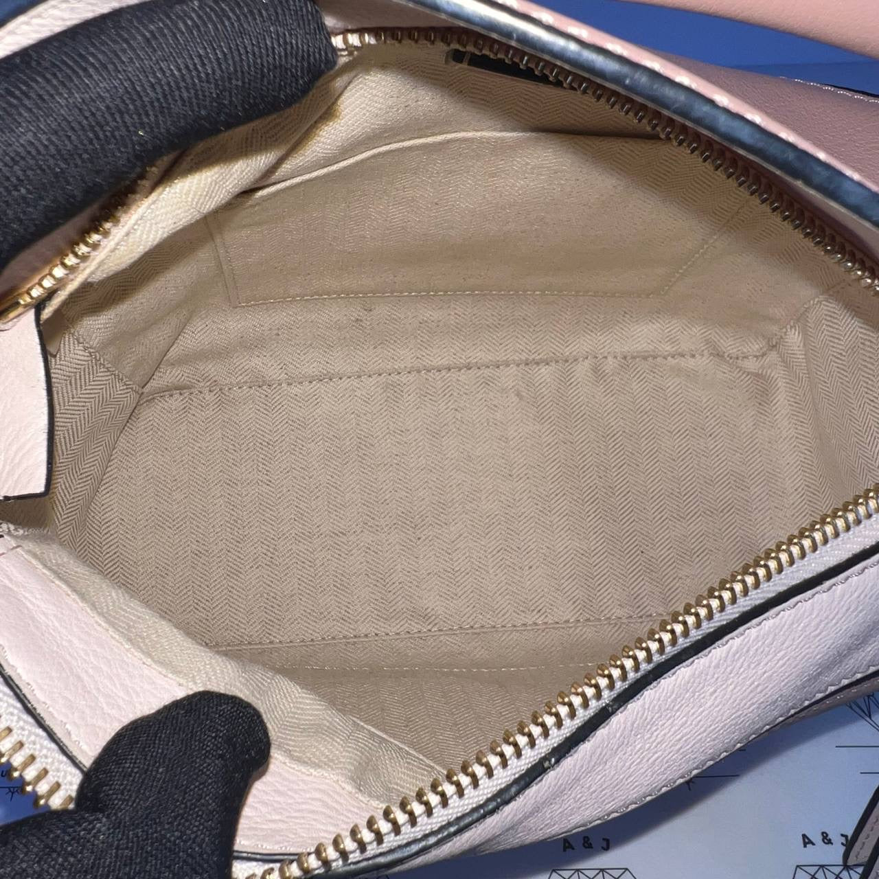 Flaw/s: dirt on the suede parts, minor glazing wear on the handle, minor dirt on interior & tiny rubs on corners