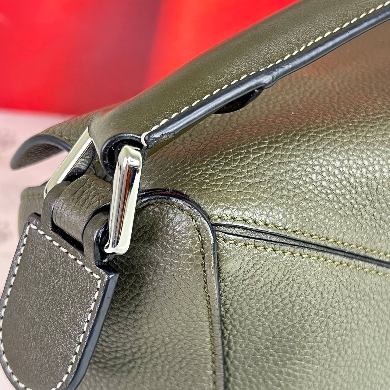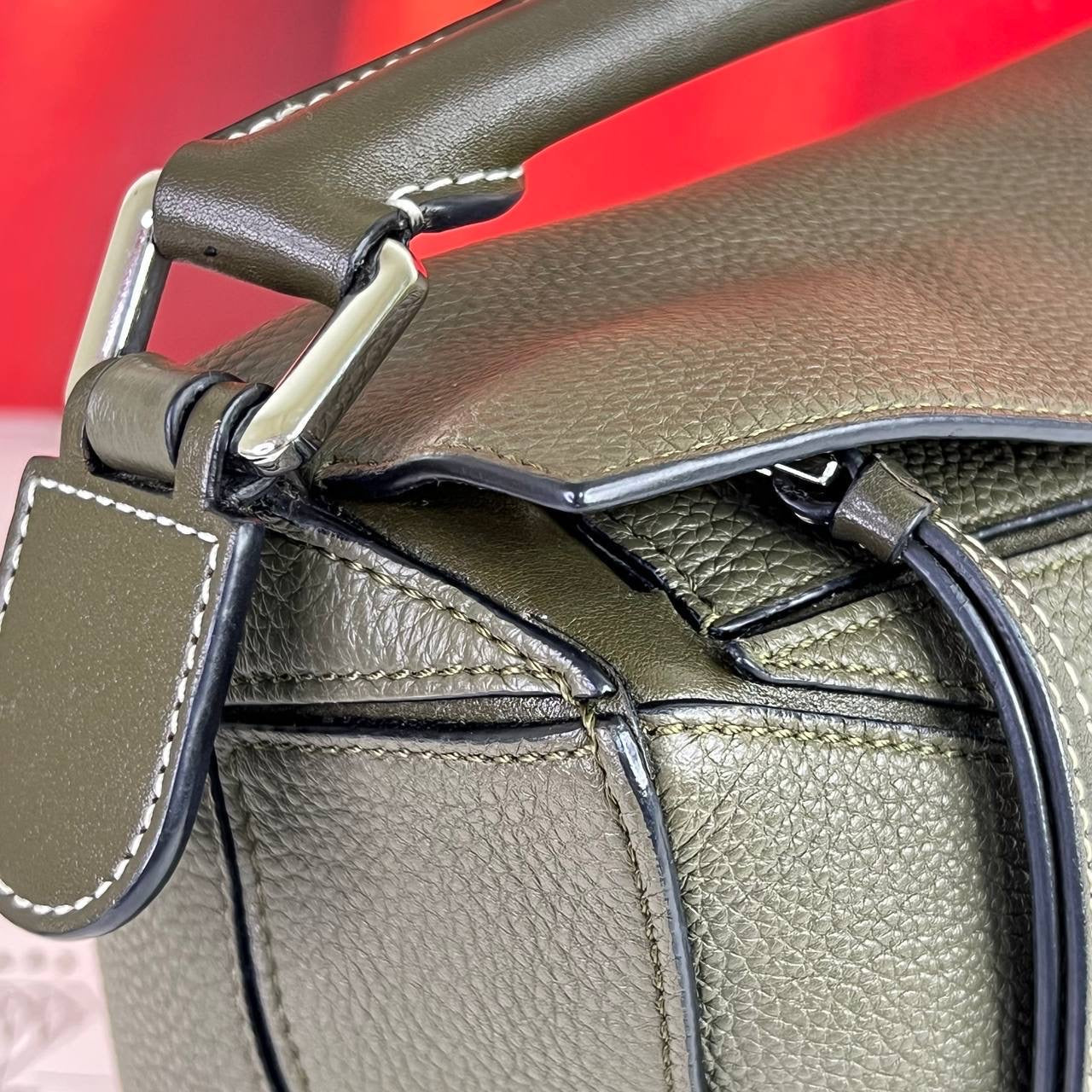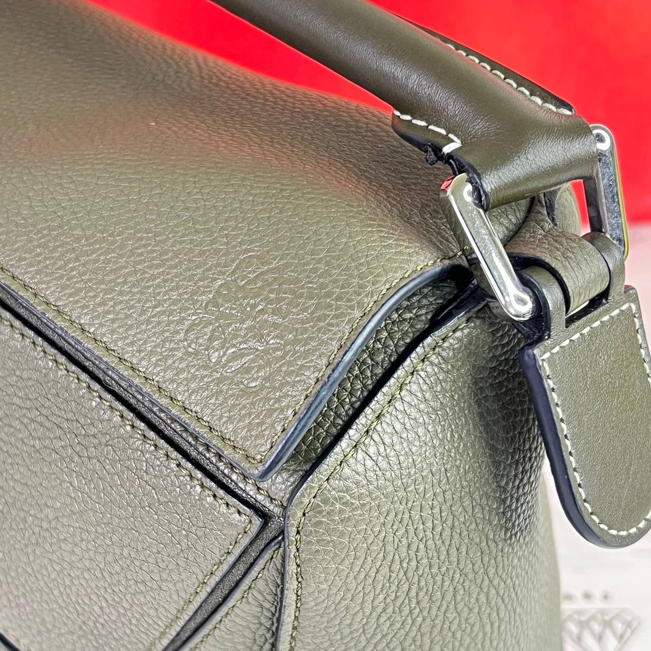 Loewe Small Puzzle in Olive Green Grained Calfskin SHW