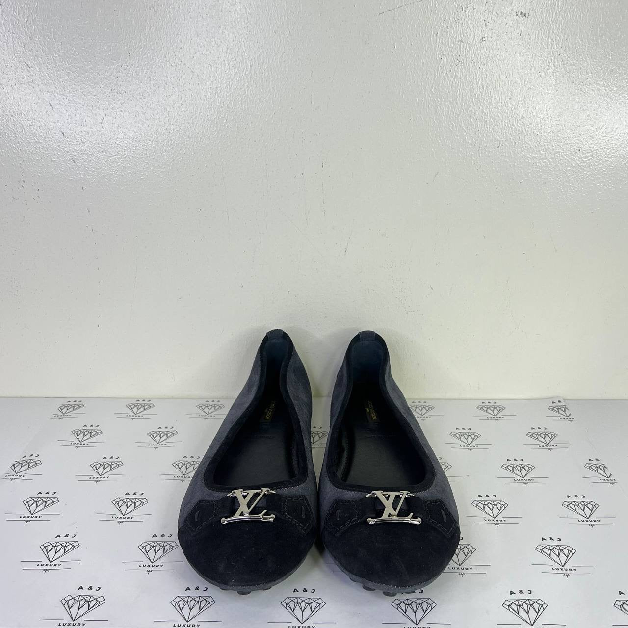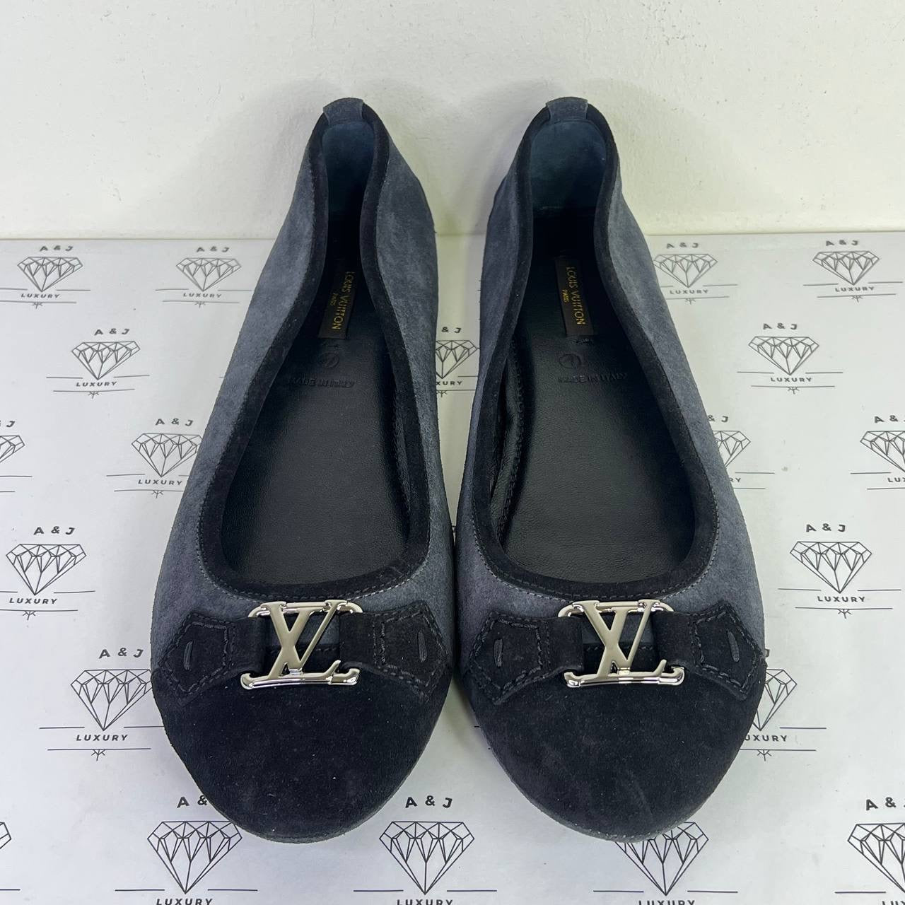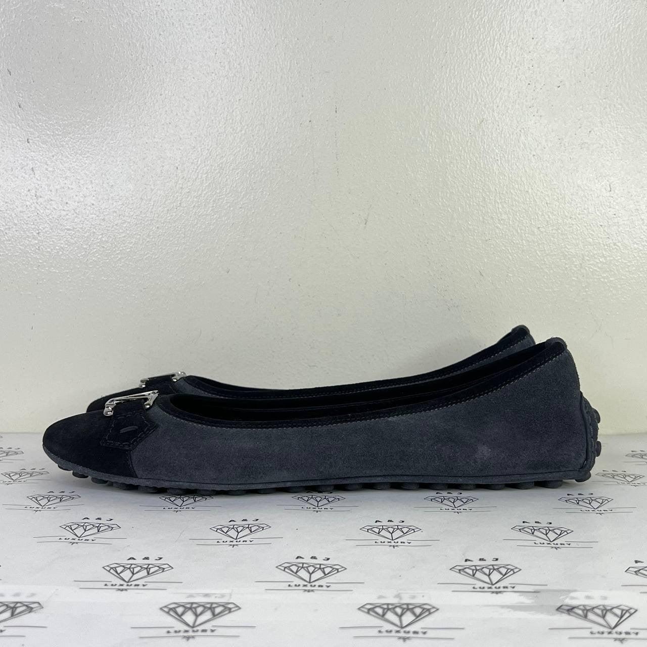 [PRE LOVED] Louis Vuitton Ballerina Flats in Black/Gray Suede Size 40.5EU