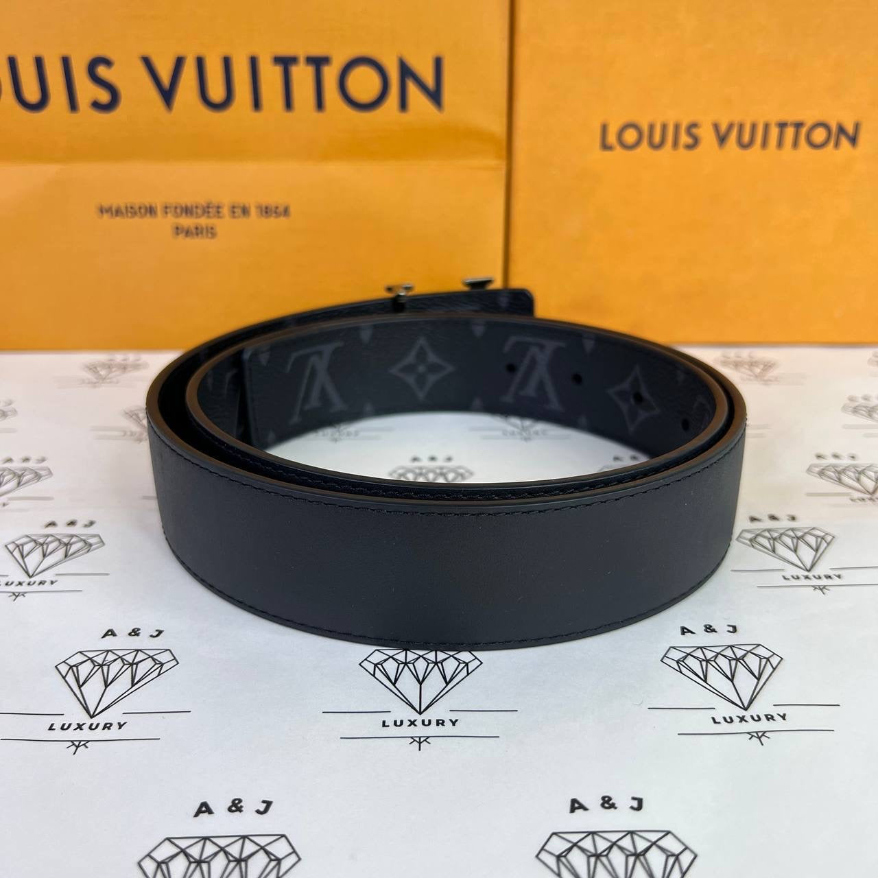 Louis Vuitton Initiales 40MM Reversible Belt in Monogram Eclipse Size 85 (JJ1292)