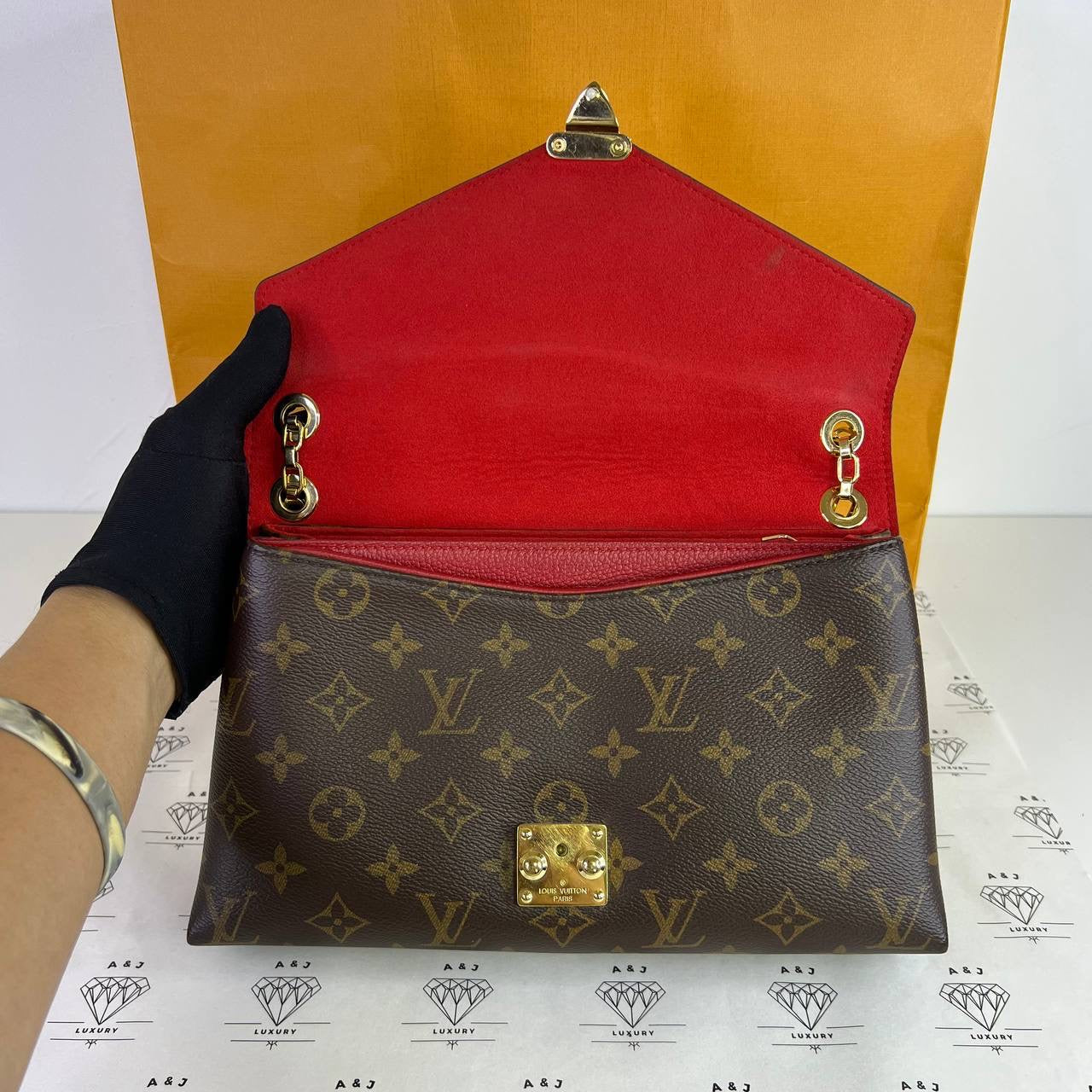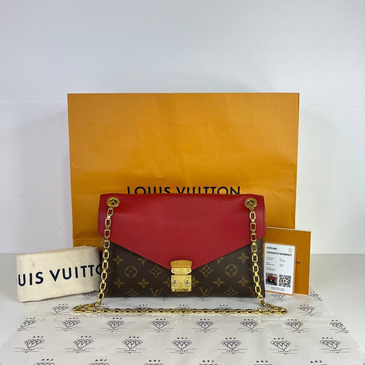 Louis Vuitton Pallas Chain Shoulder Bag in Monogram Red interior (CA3196)