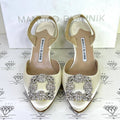 Manolo Blahnik Hangisi Slingback 70MM in White Size 36.5EU