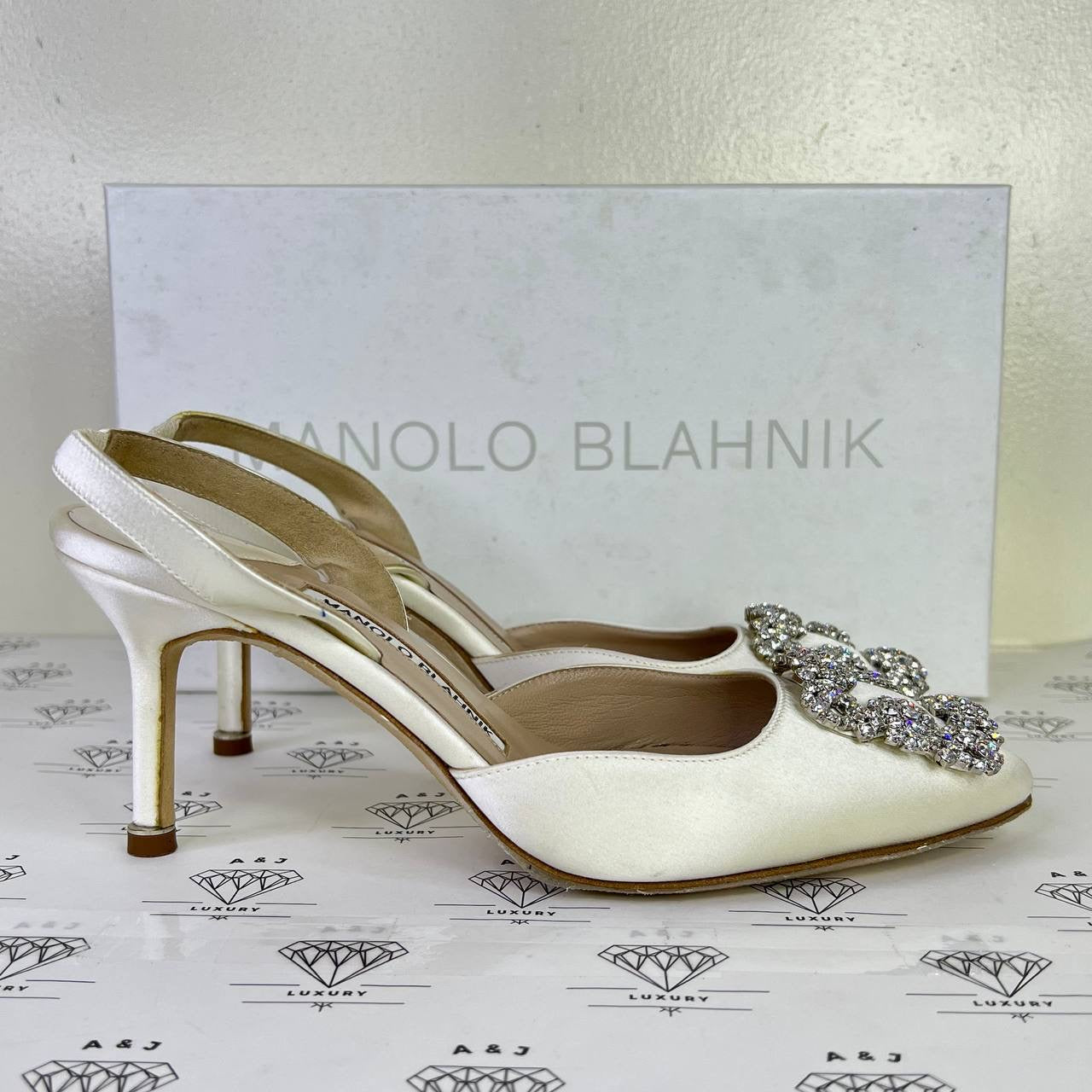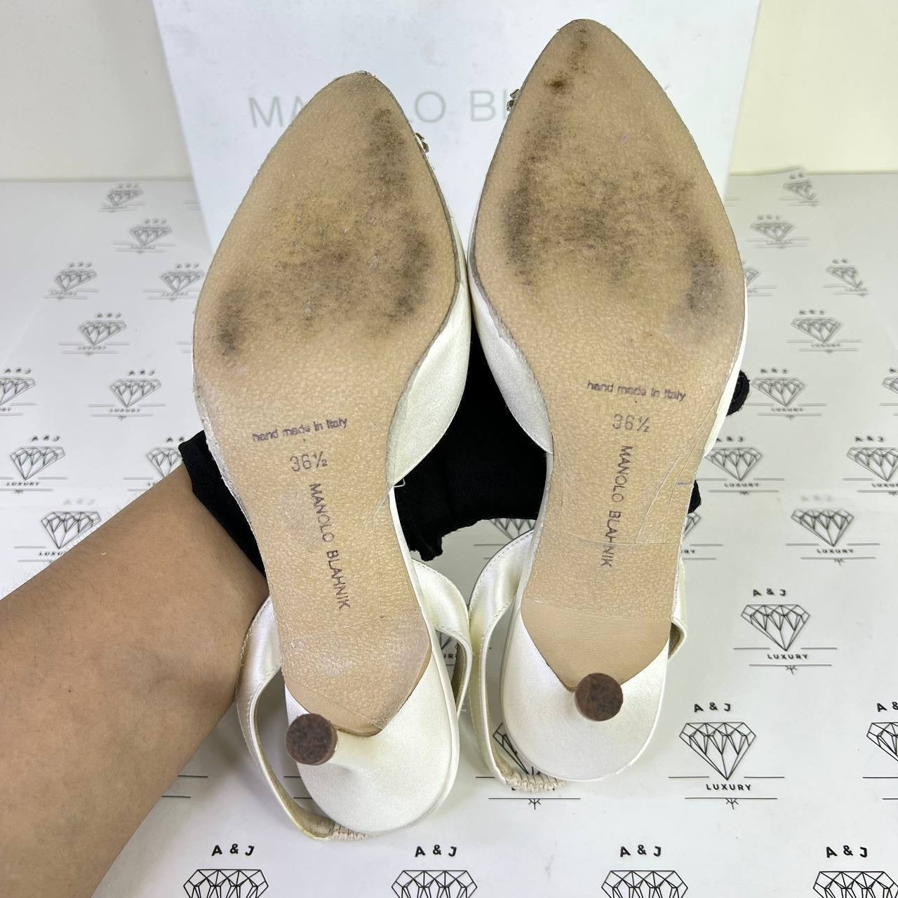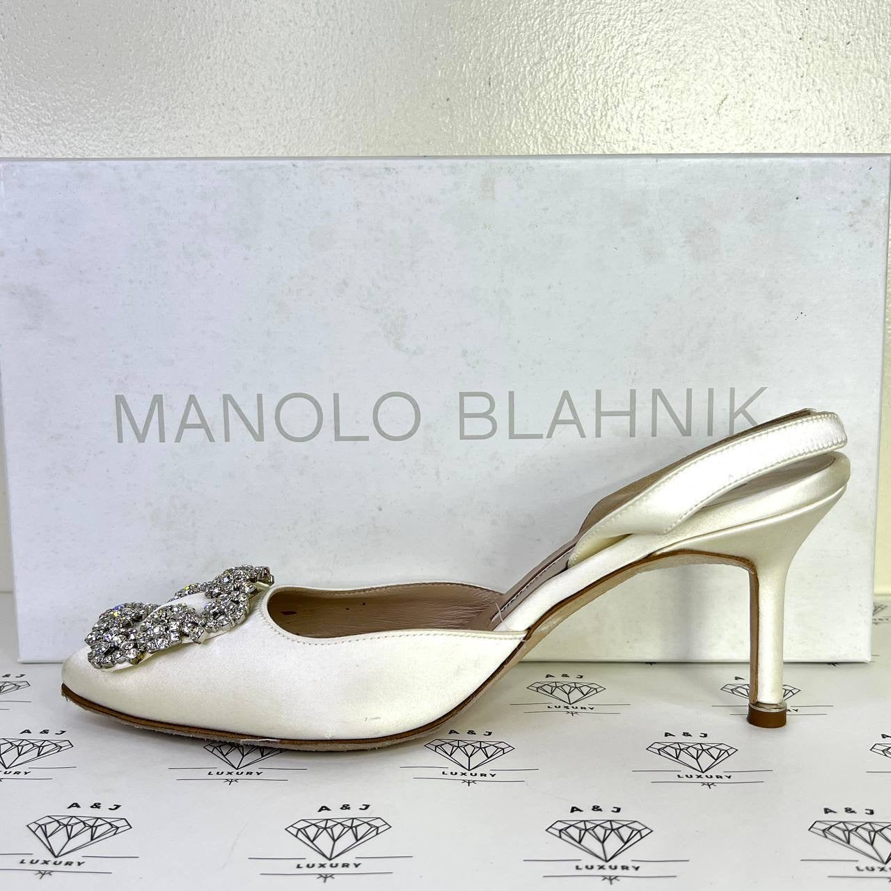 [PRE LOVED] Manolo Blahnik Hangisi Slingback 70MM in White Size 36.5EU