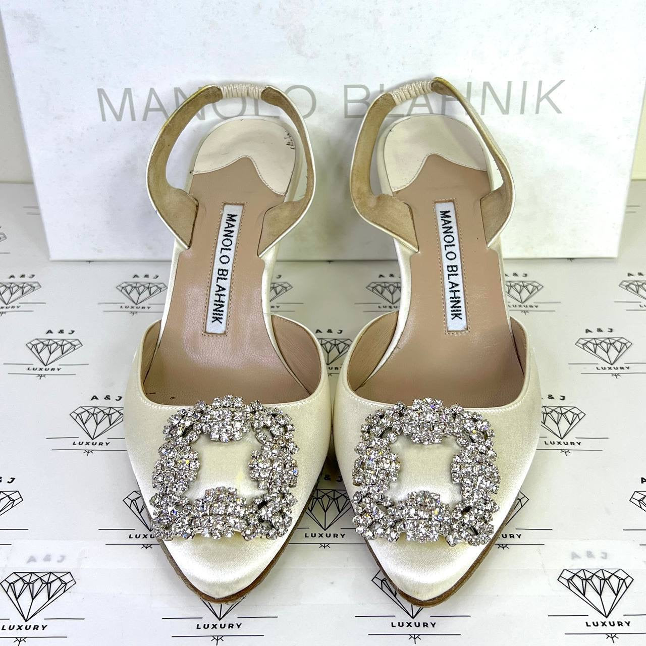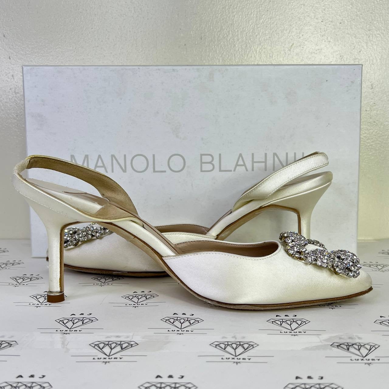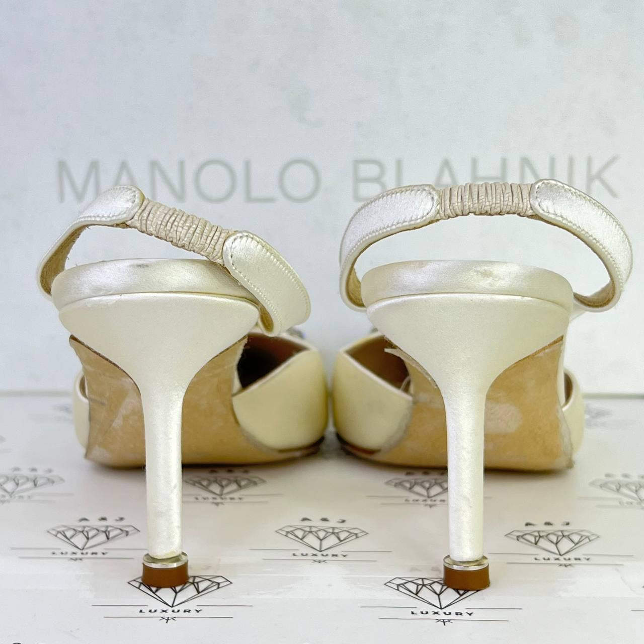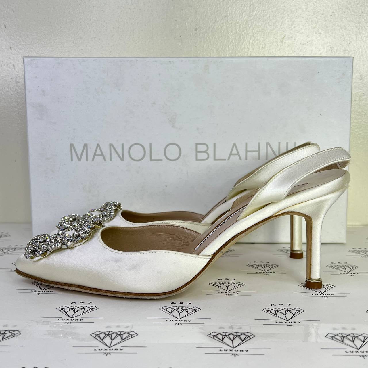 [PRE LOVED] Manolo Blahnik Hangisi Slingback 70MM in White Size 36.5EU