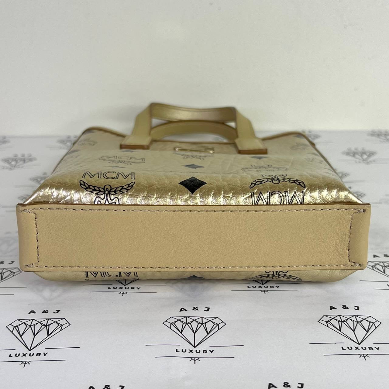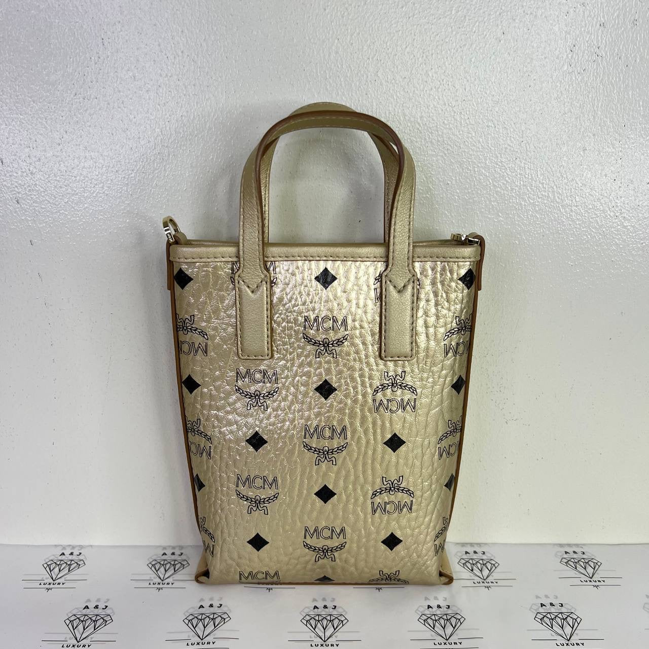 [PRE LOVED] MCM Mini Visetos Top Handle in Gold GHW
