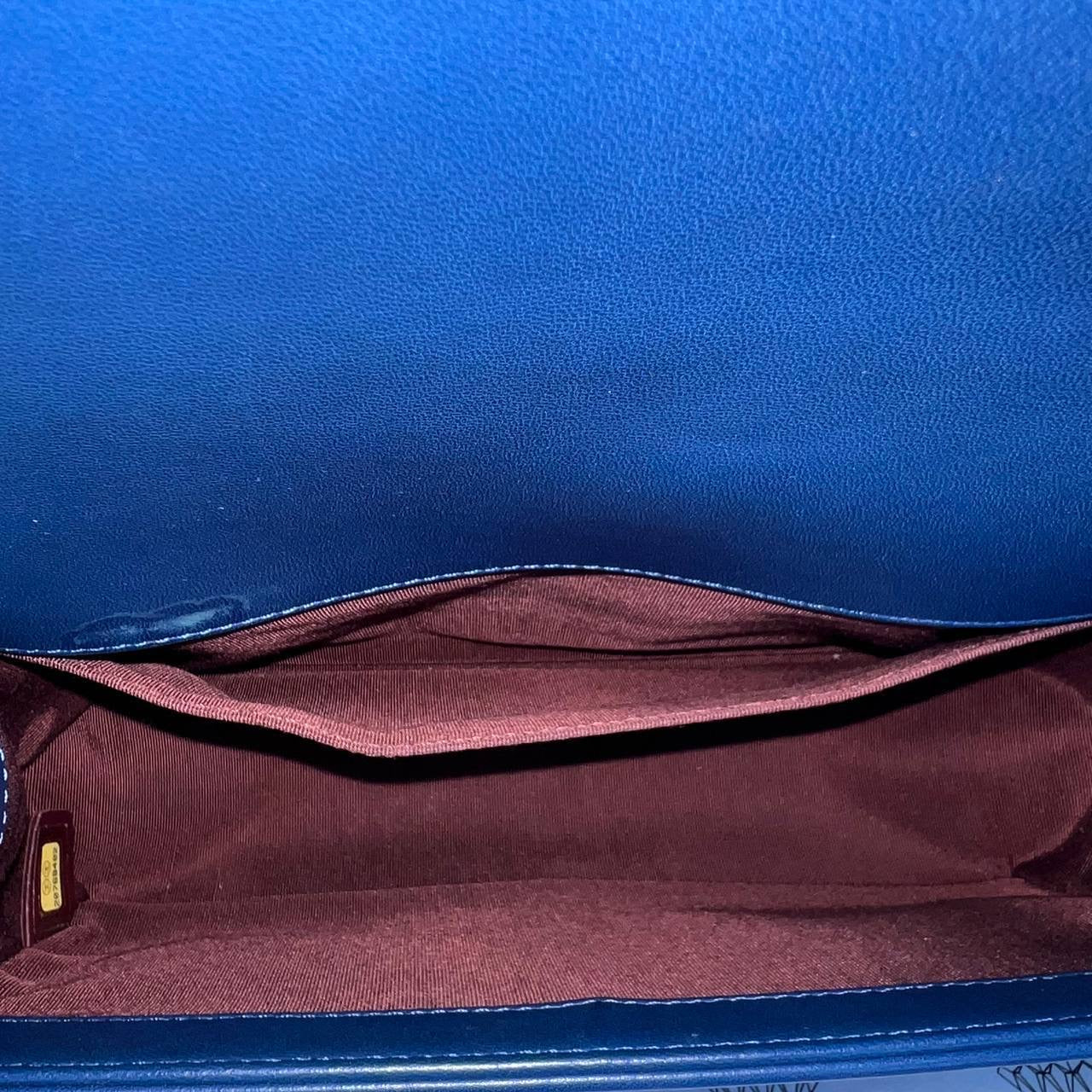 [PRE LOVED] Chanel Old Medium Chevron Leboy in Blue Calfskin Leather RHW (Series 20)