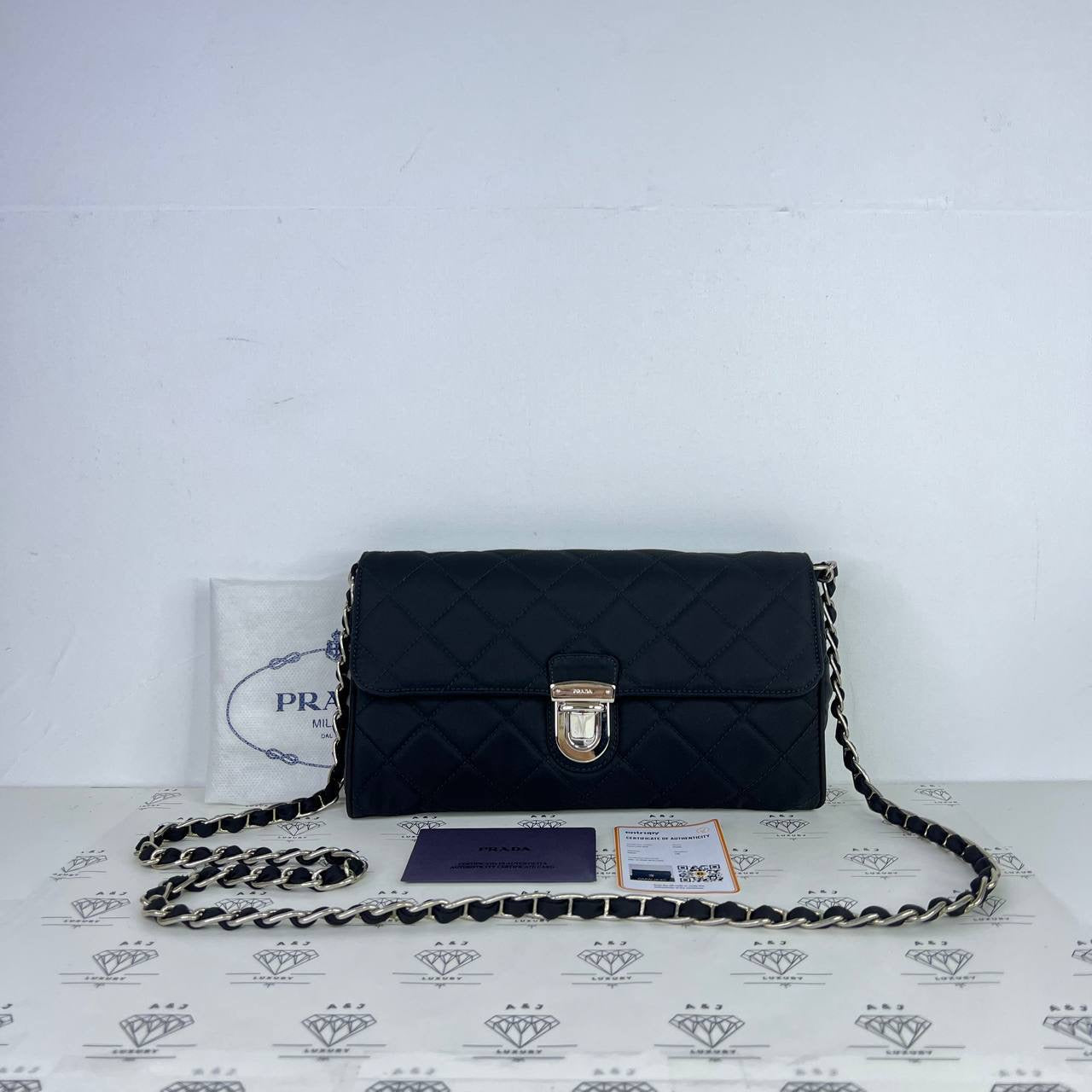 [PRE LOVED] Prada 1BH584 Tessuto Impuntu Flap Bag in Black SHW