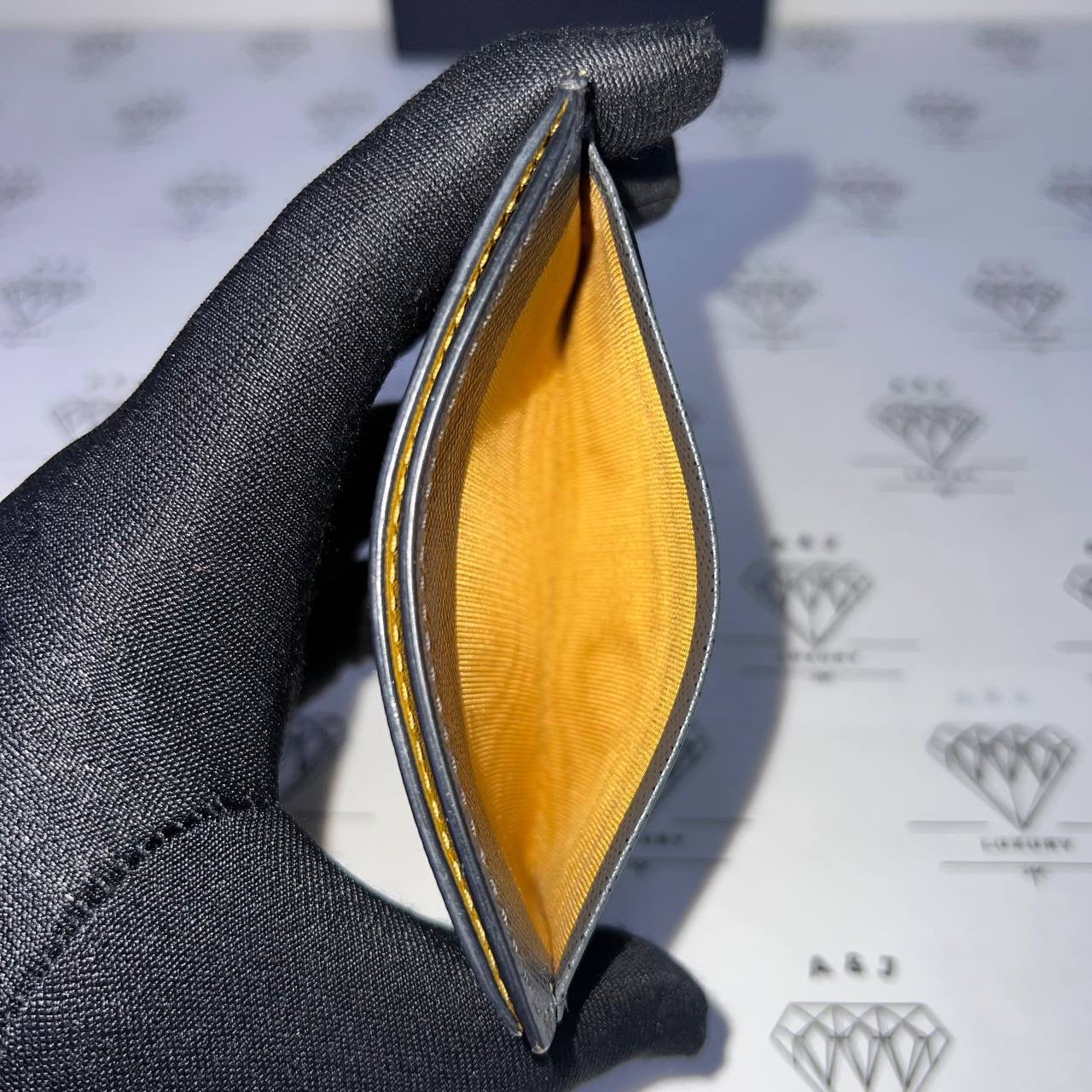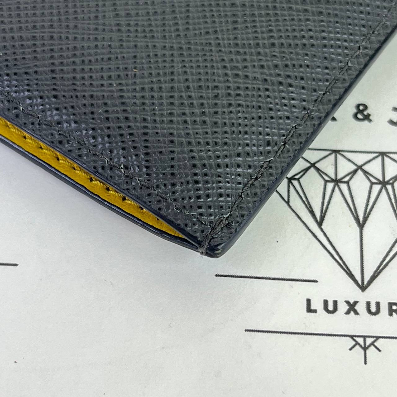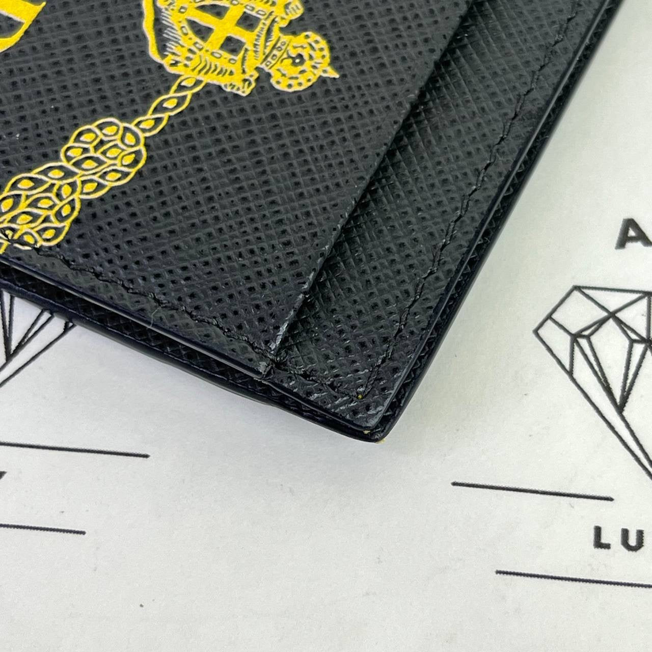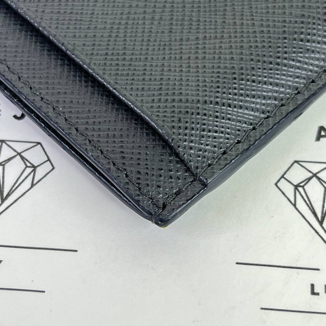 [PRE LOVED] Prada Flat Cardholder in Gray/Yellow Saffiano Leather