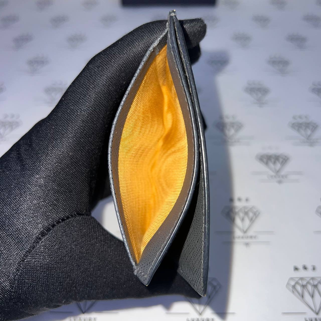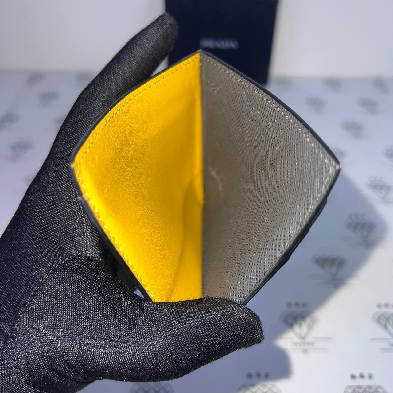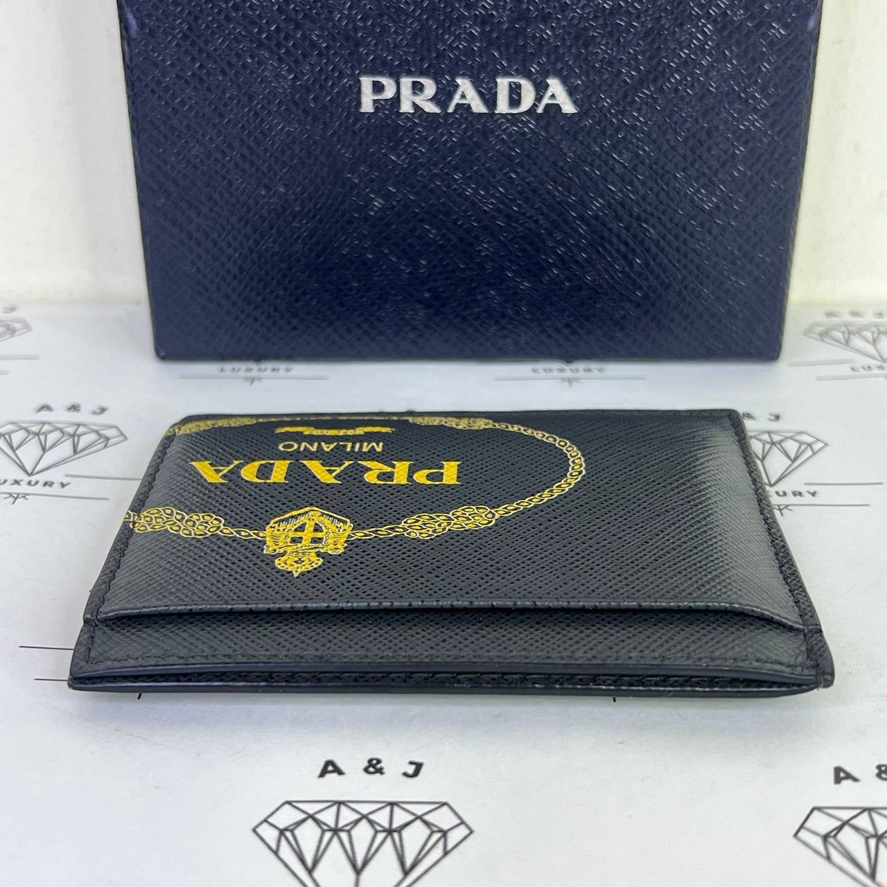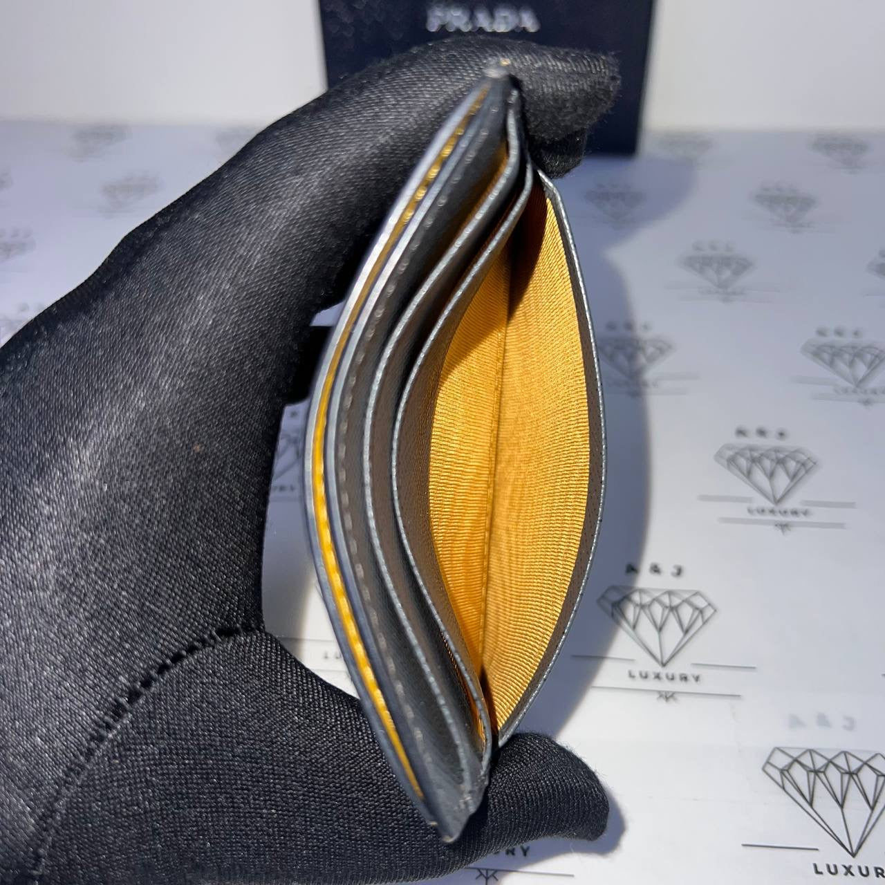 [PRE LOVED] Prada Flat Cardholder in Gray/Yellow Saffiano Leather