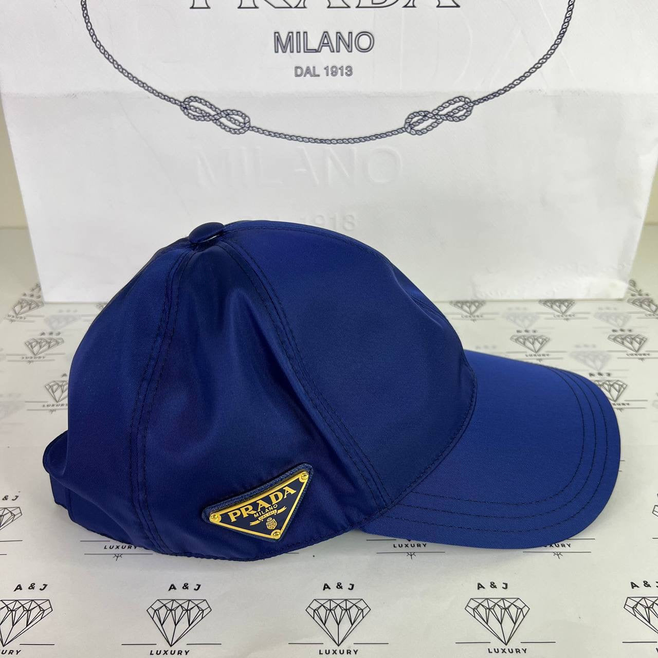 [PRE LOVED] Prada Nylon Cap in Blue GHW Size Small
