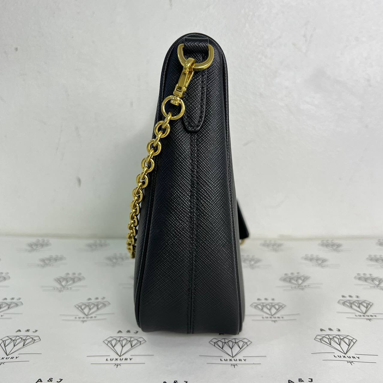 Prada Re-edition 2005 Multi Pochette in Black Saffiano Leather GHW