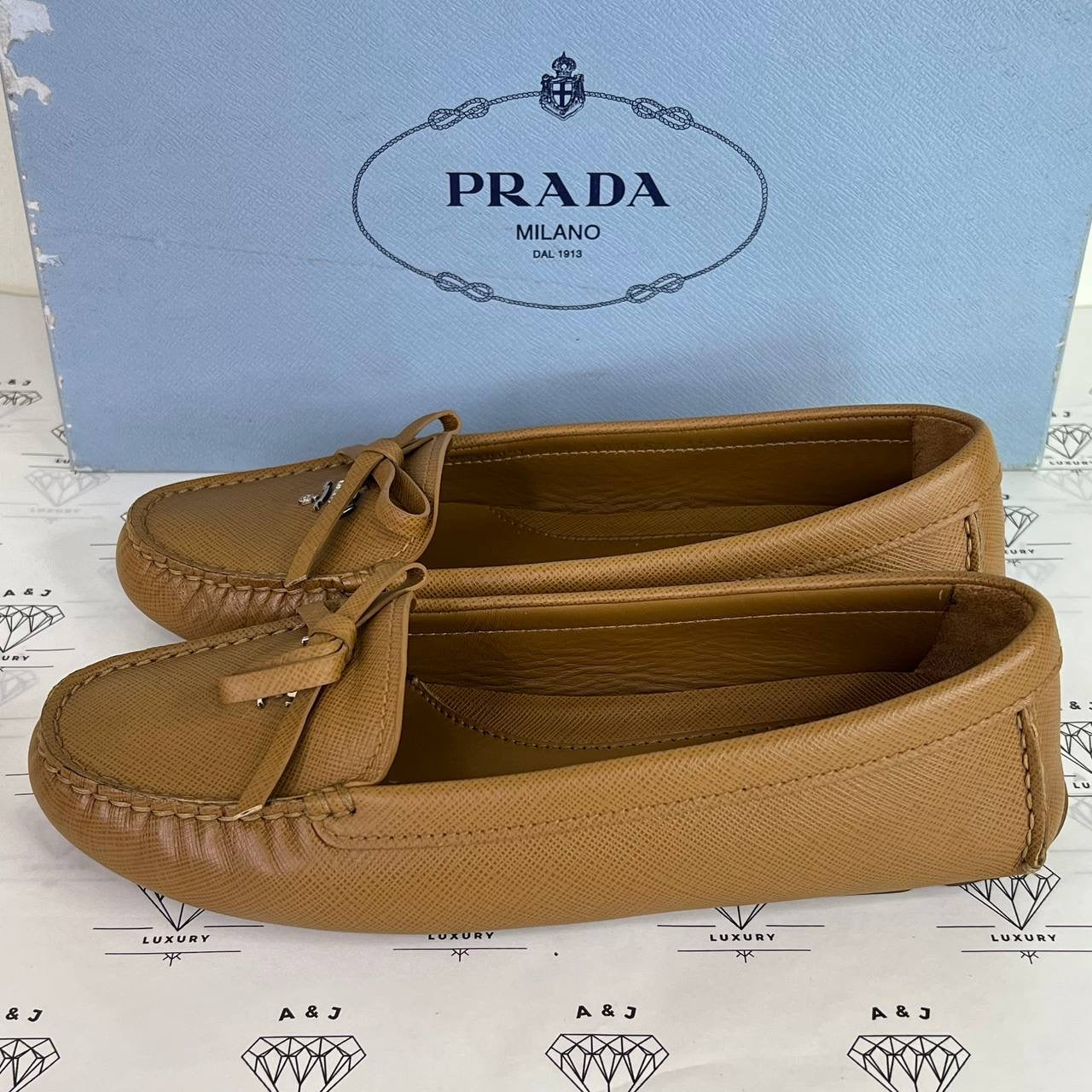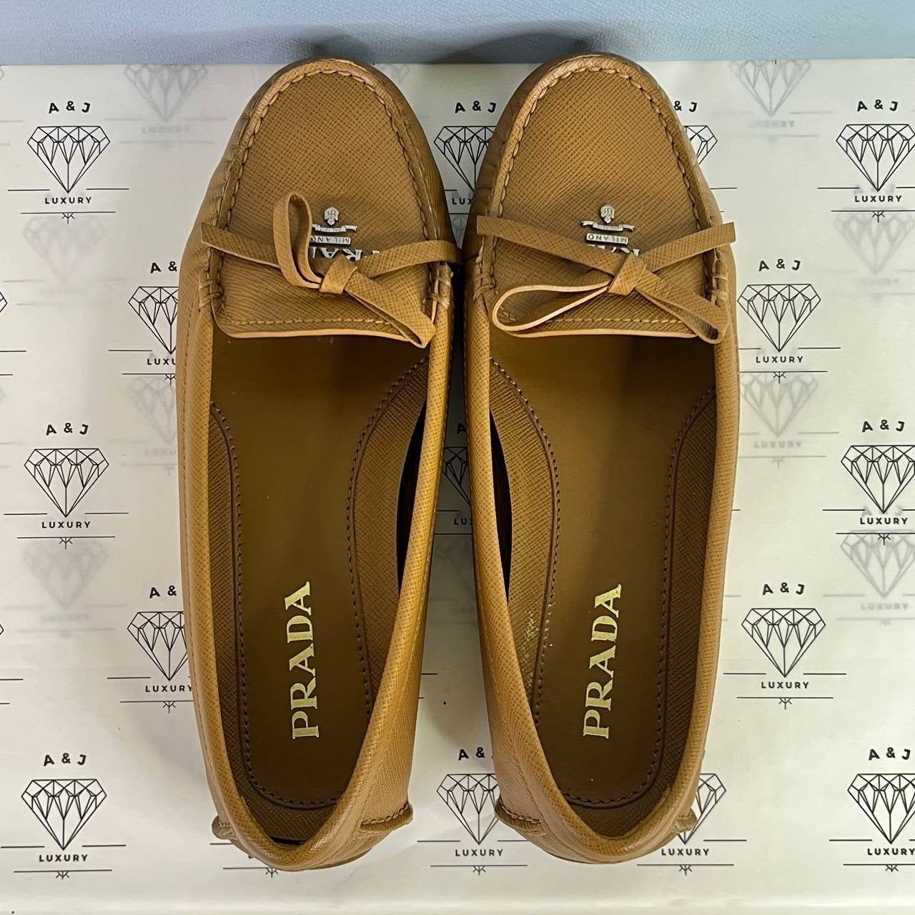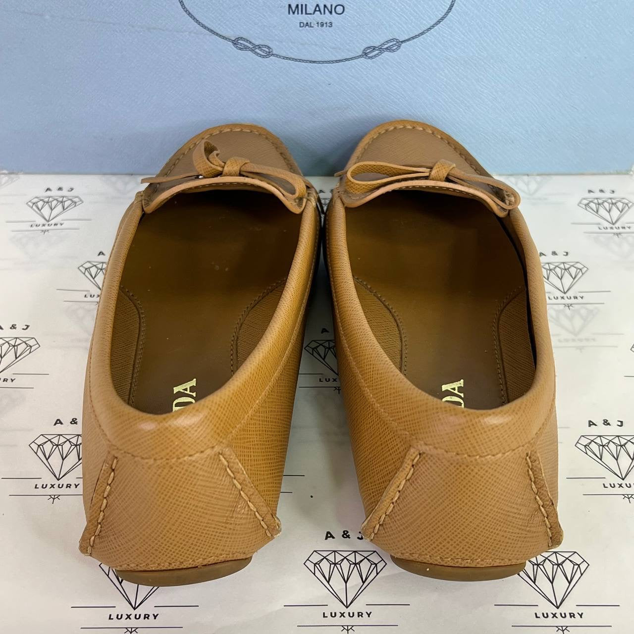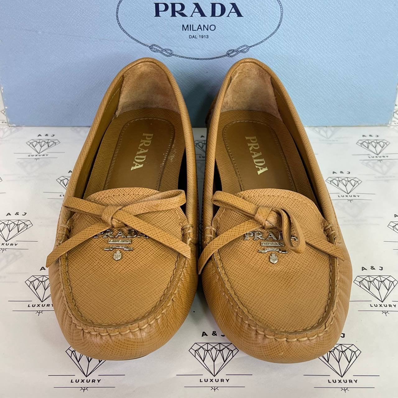 Prada Saffiano Loafers in Brown Size 35.5EU