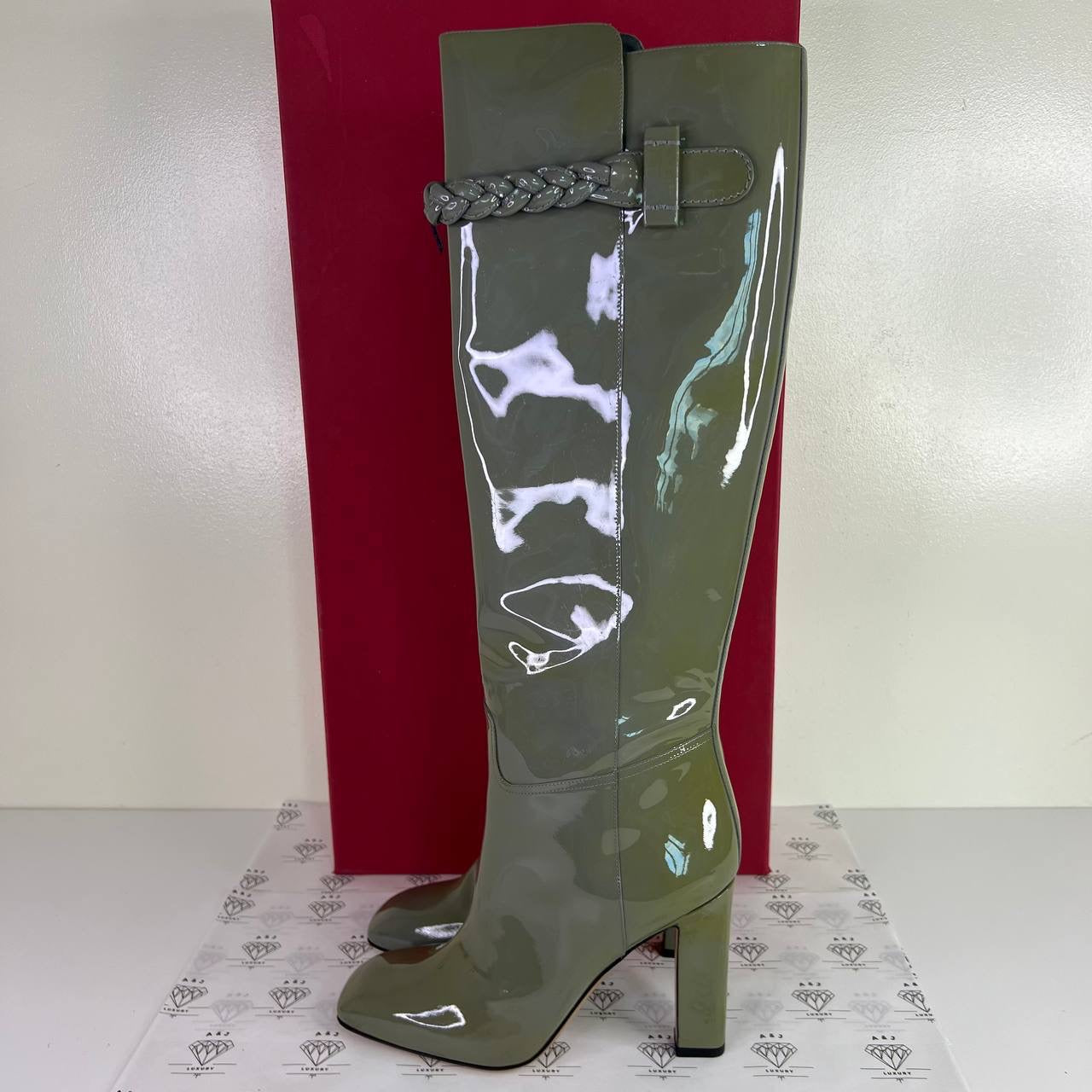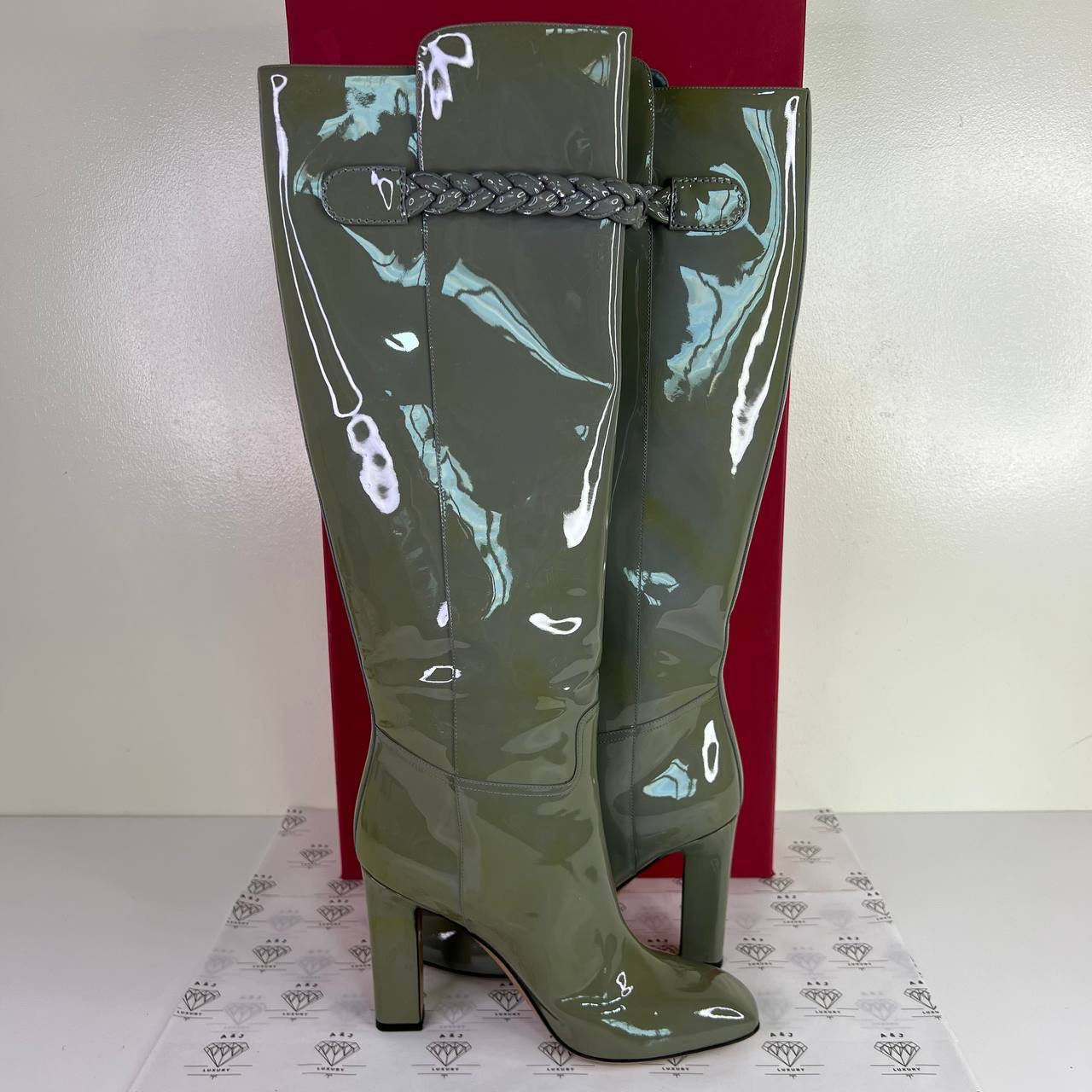 [PRE LOVED] Valentino Knee High Patent Boots in Green Size 40EU