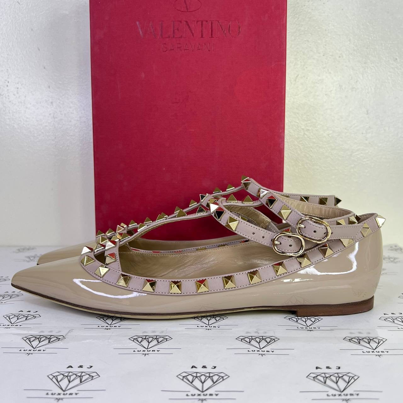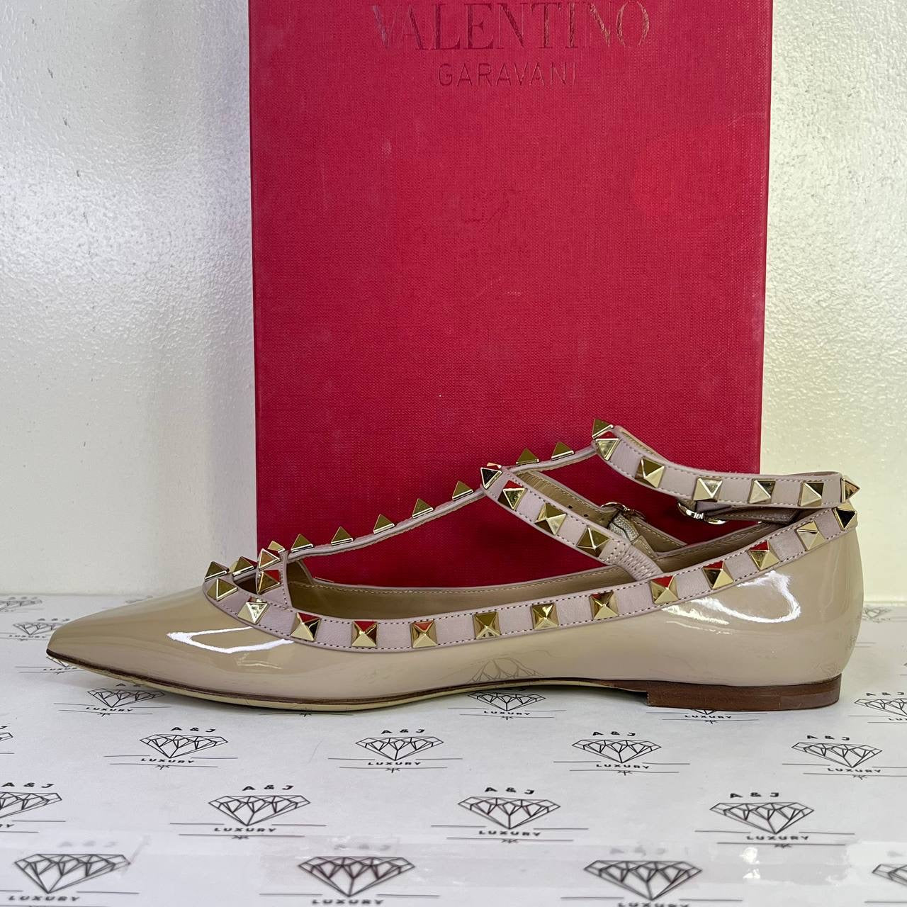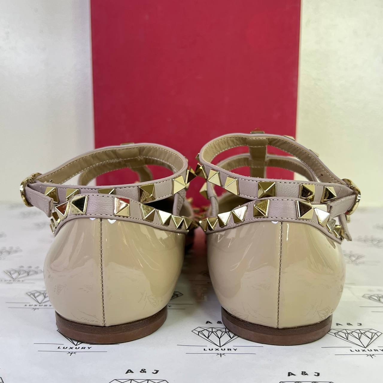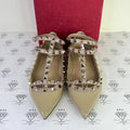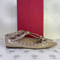 Valentino Rockstud Caged Flats in Beige Patent Leather Size 37.5EU