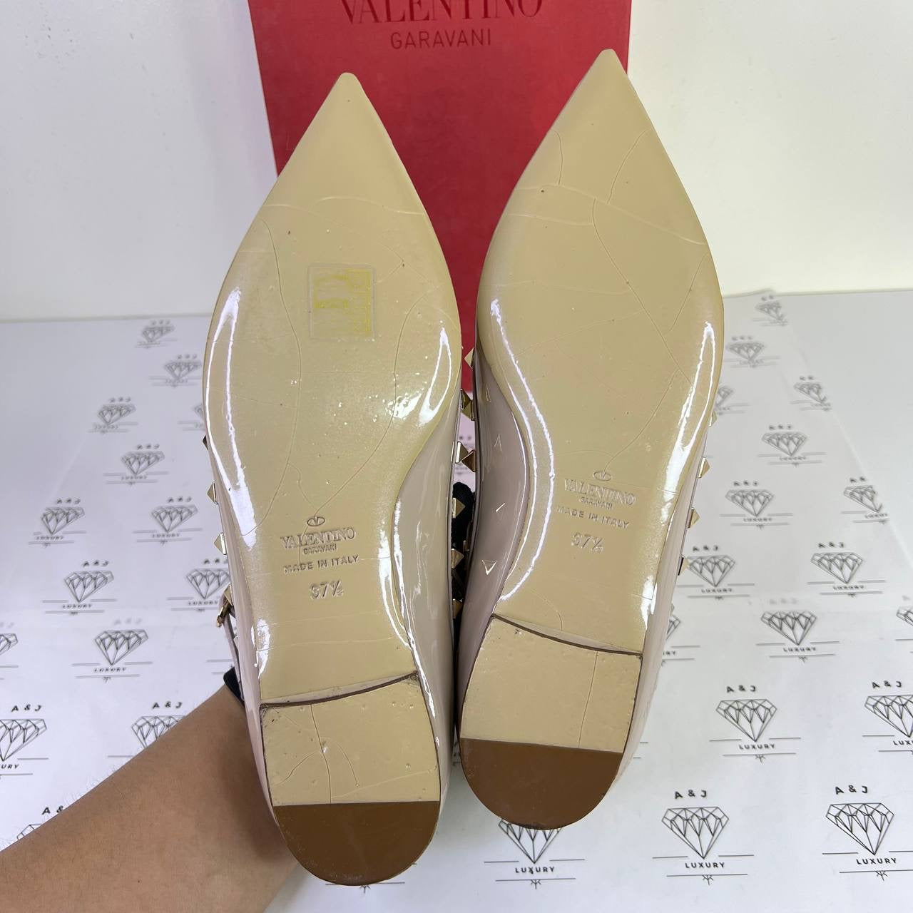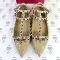 [PRE LOVED] Valentino Rockstud Caged Flats in Beige Patent Leather Size 37.5EU