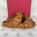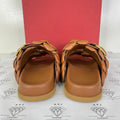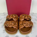 [PRE LOVED] Valentino Rose Leather Slide in Brown Size 36EU