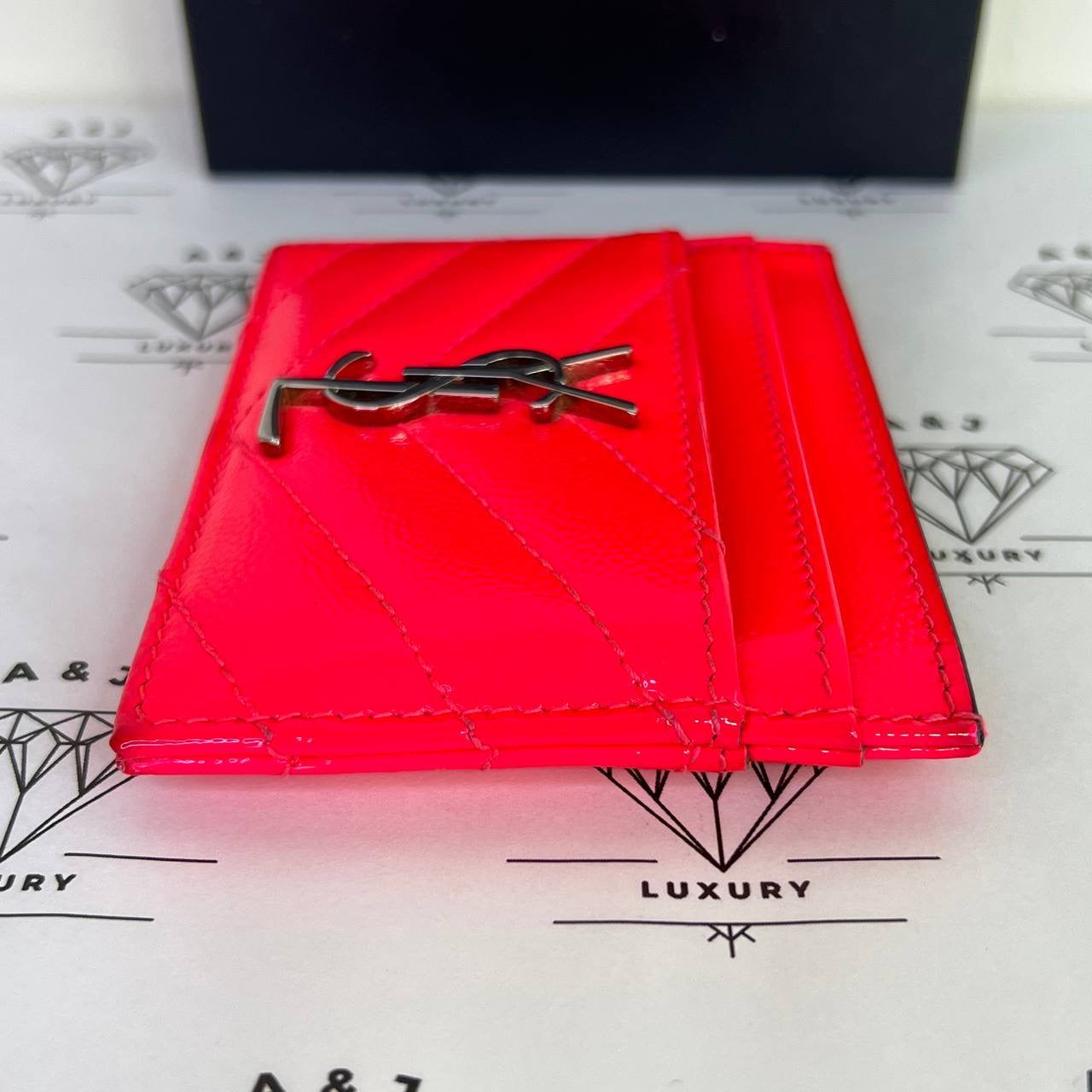 [PRE LOVED] YSL Flat Cardholder in Pink Patent Leather SHW