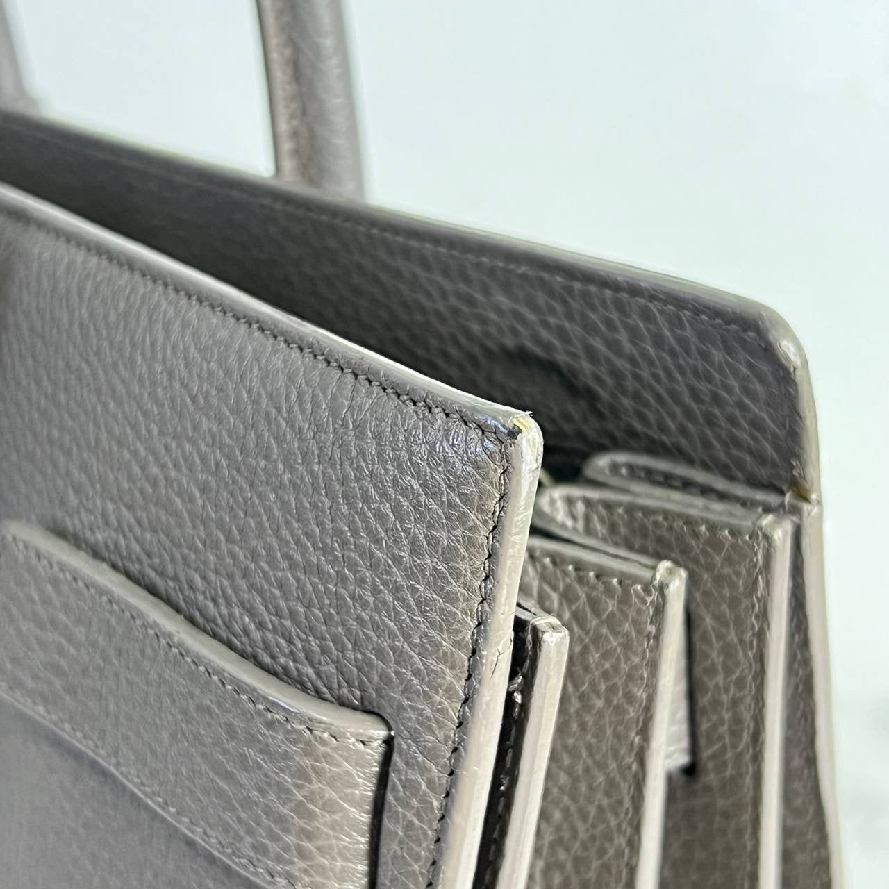 Flaw/s: minor rubs on corners and top handle, glazing wear on the side, minor scuff on the top corners & few dirt on interior